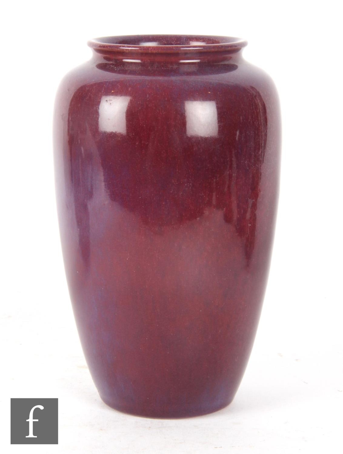 Ashby Potters Guild - An early 20th Century Arts and Crafts vase decorated in an all over deep red with purple patches and speckling, impressed oval mark, height 19cm.