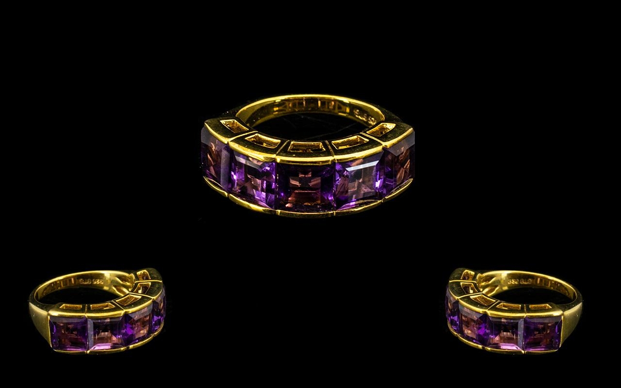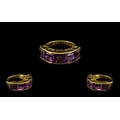 Amethyst Large Band Ring, comprising five square cut Royal purple amethysts totalling 8.5cts, making each of the richly hued amethysts 1.5cts, set in a close row across the finger in gold vermeil and silver; size S