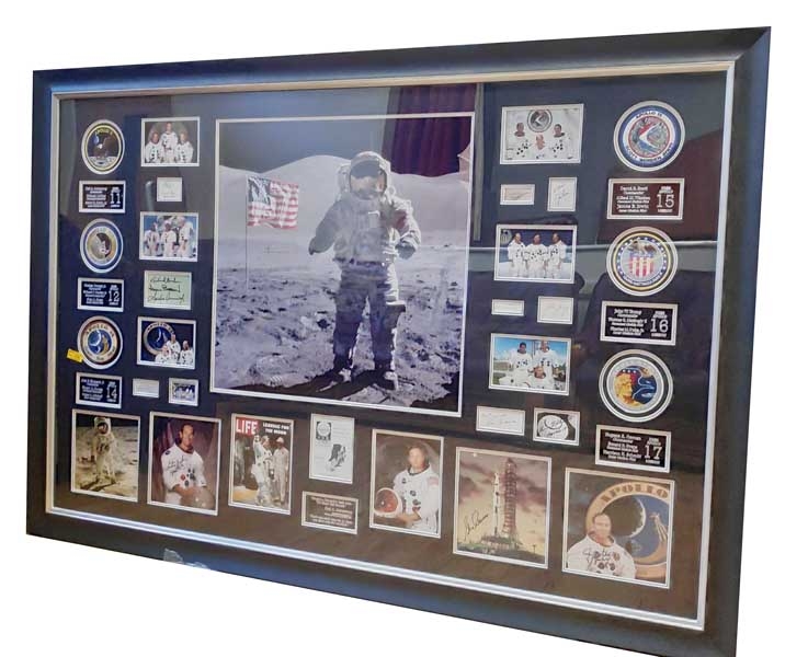 A Large Framed Apollo Moon Landing Montage, signed by 12 Astronauts