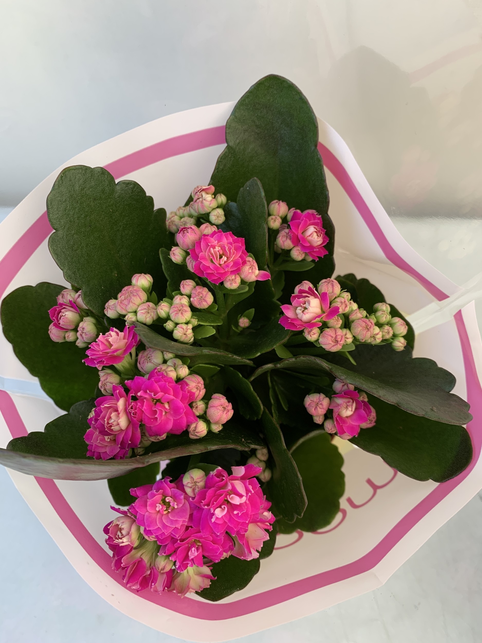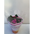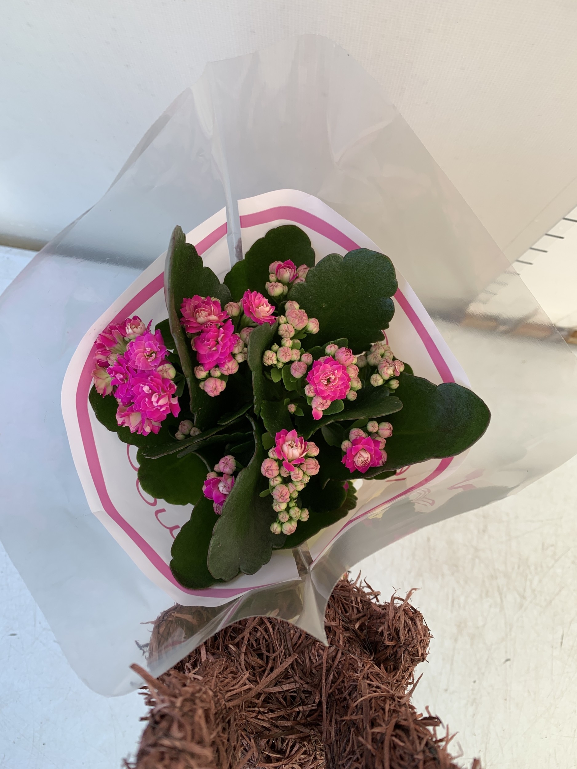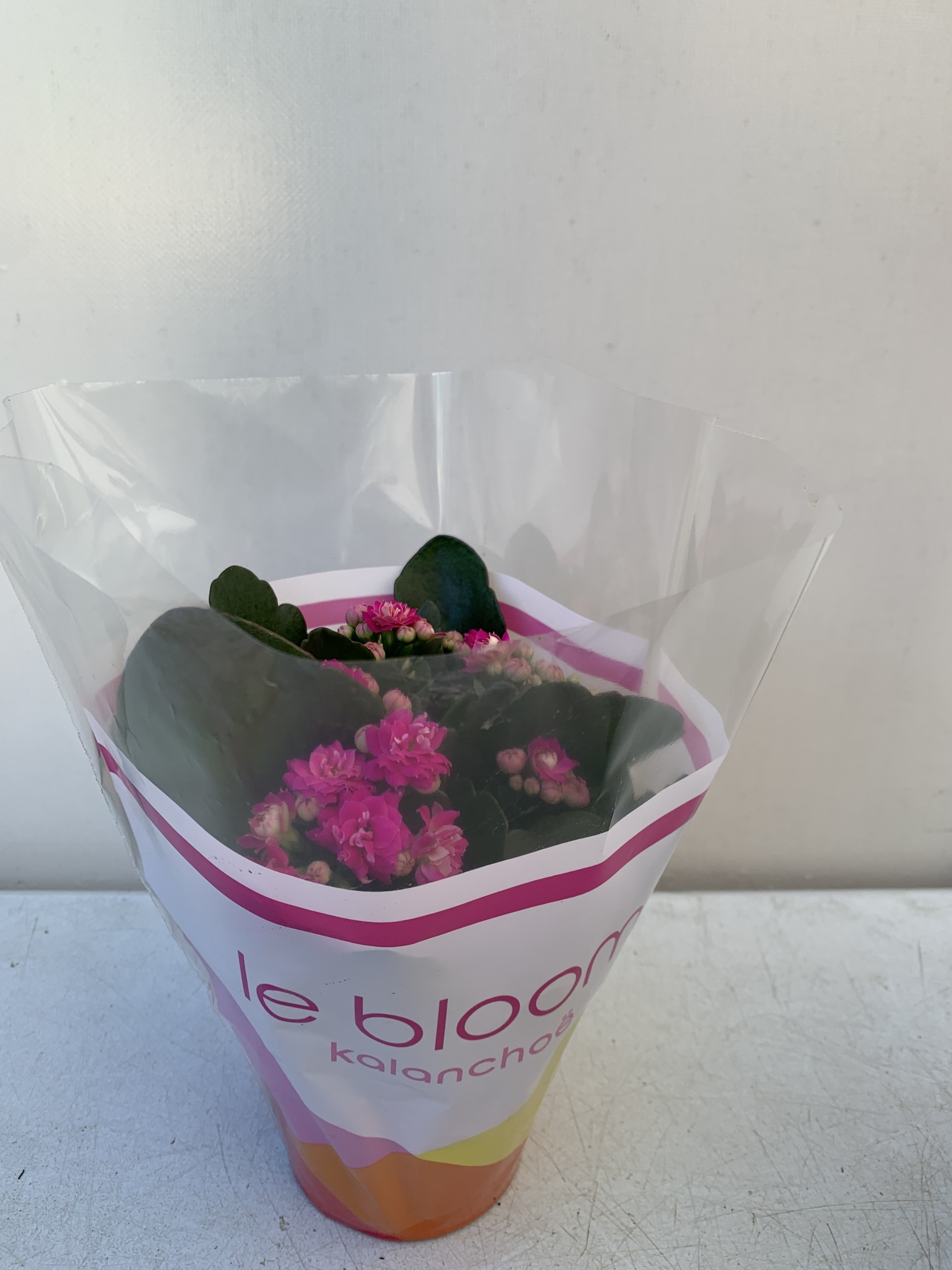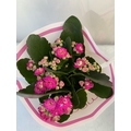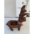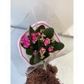 ONE CHRISTMAS REINDEER BASKET PLANTER WITH GIFT WRAPPED POTTED KALANCHOE CALANDIVA IN FLOWER. REINDEER STANDS 50CM TALL.