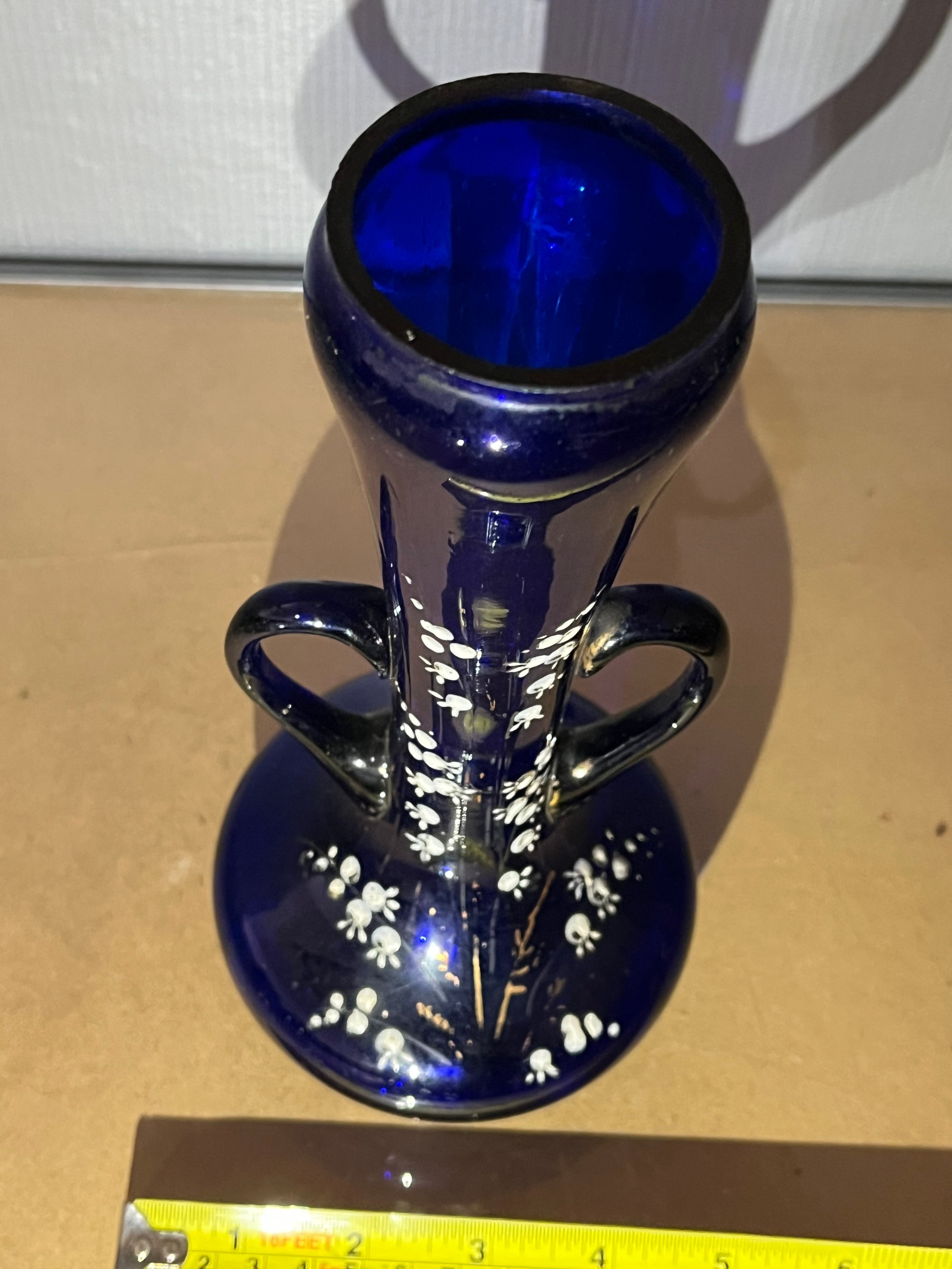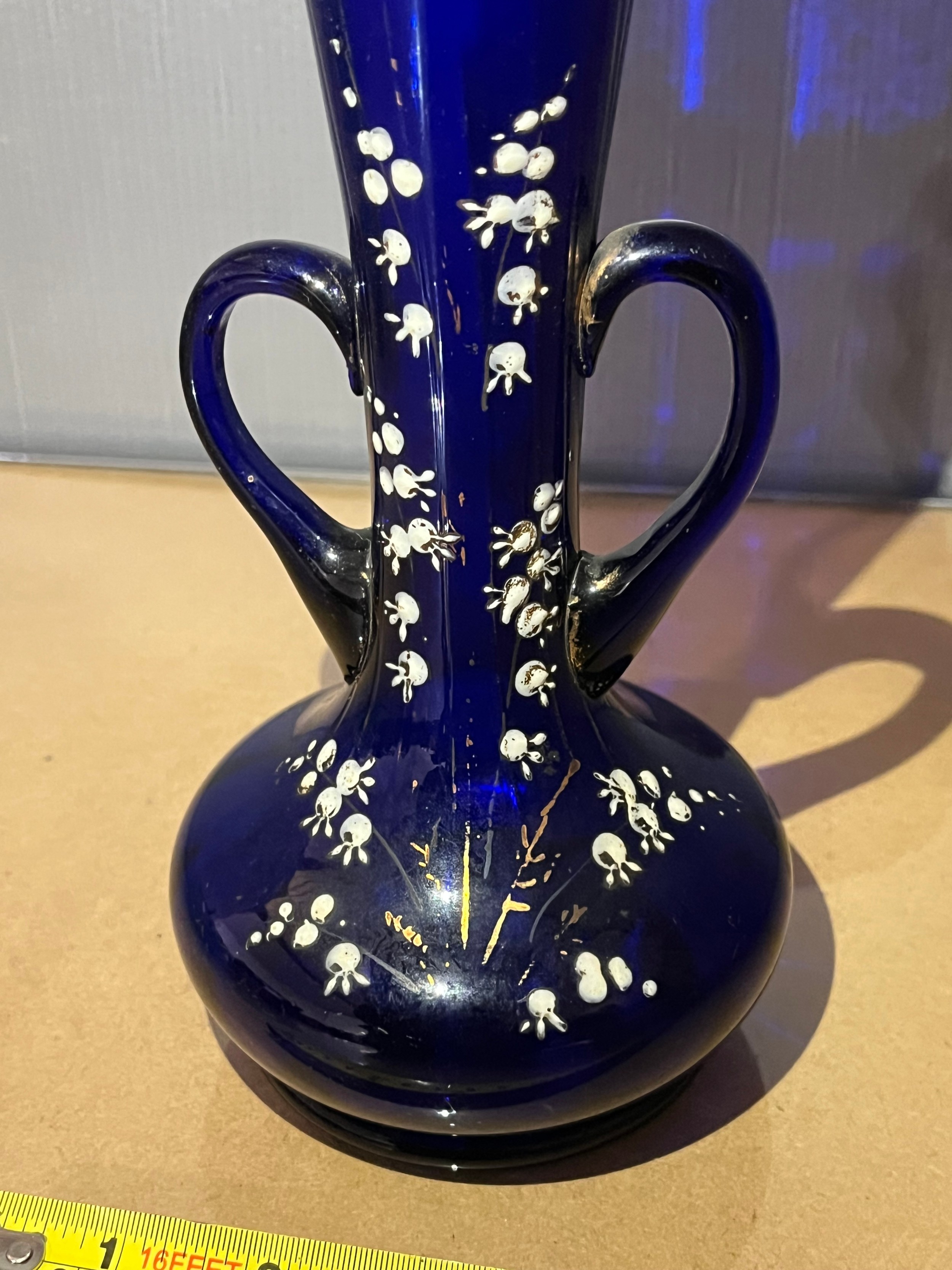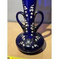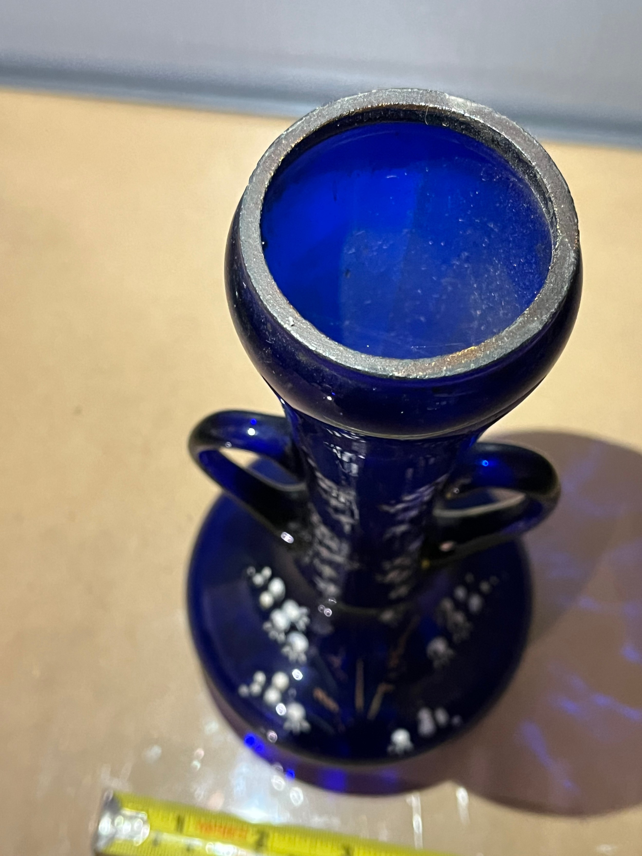 Cobalt blue Mary Gregory glass vase in Lily of the valley pattern