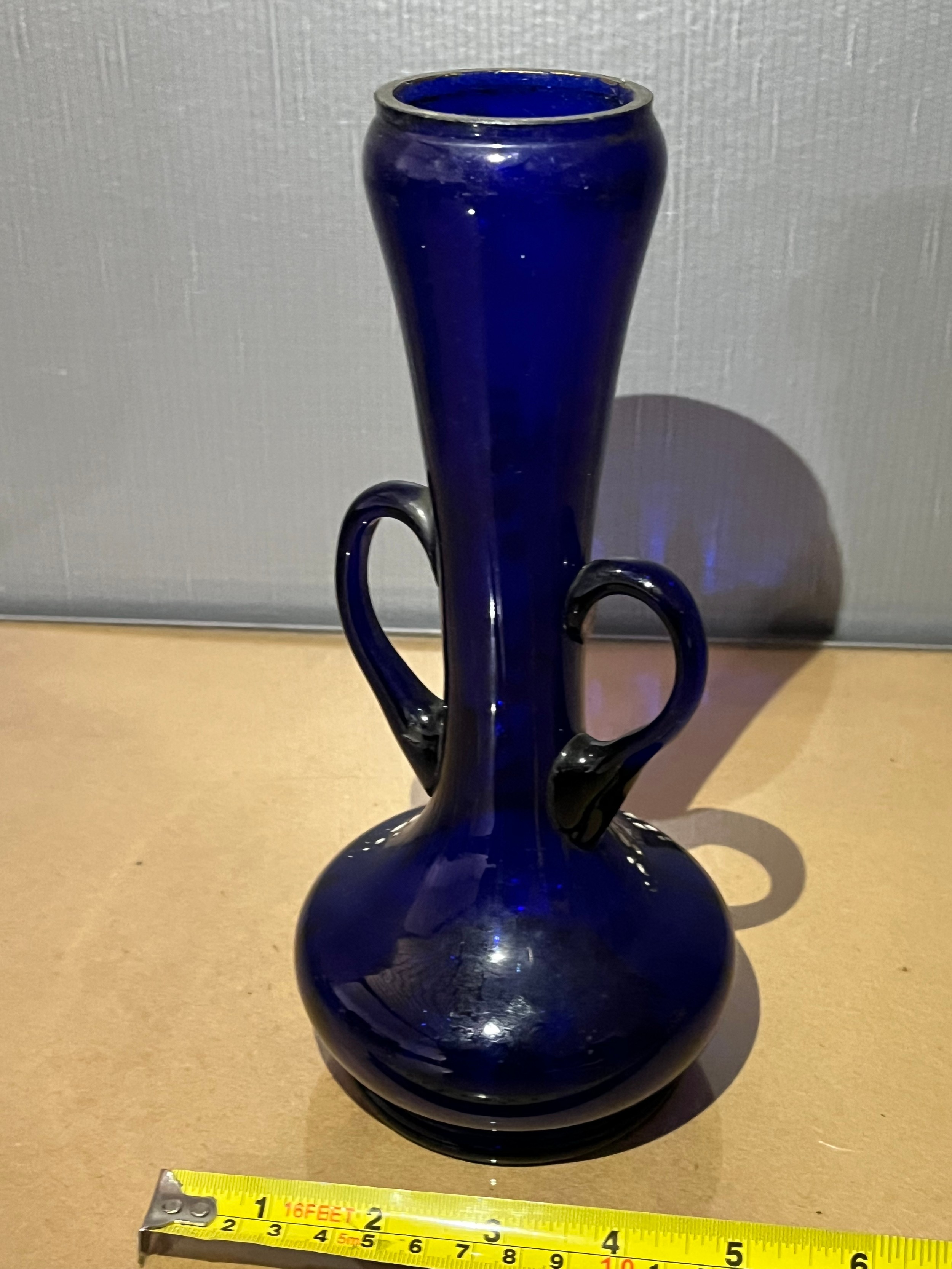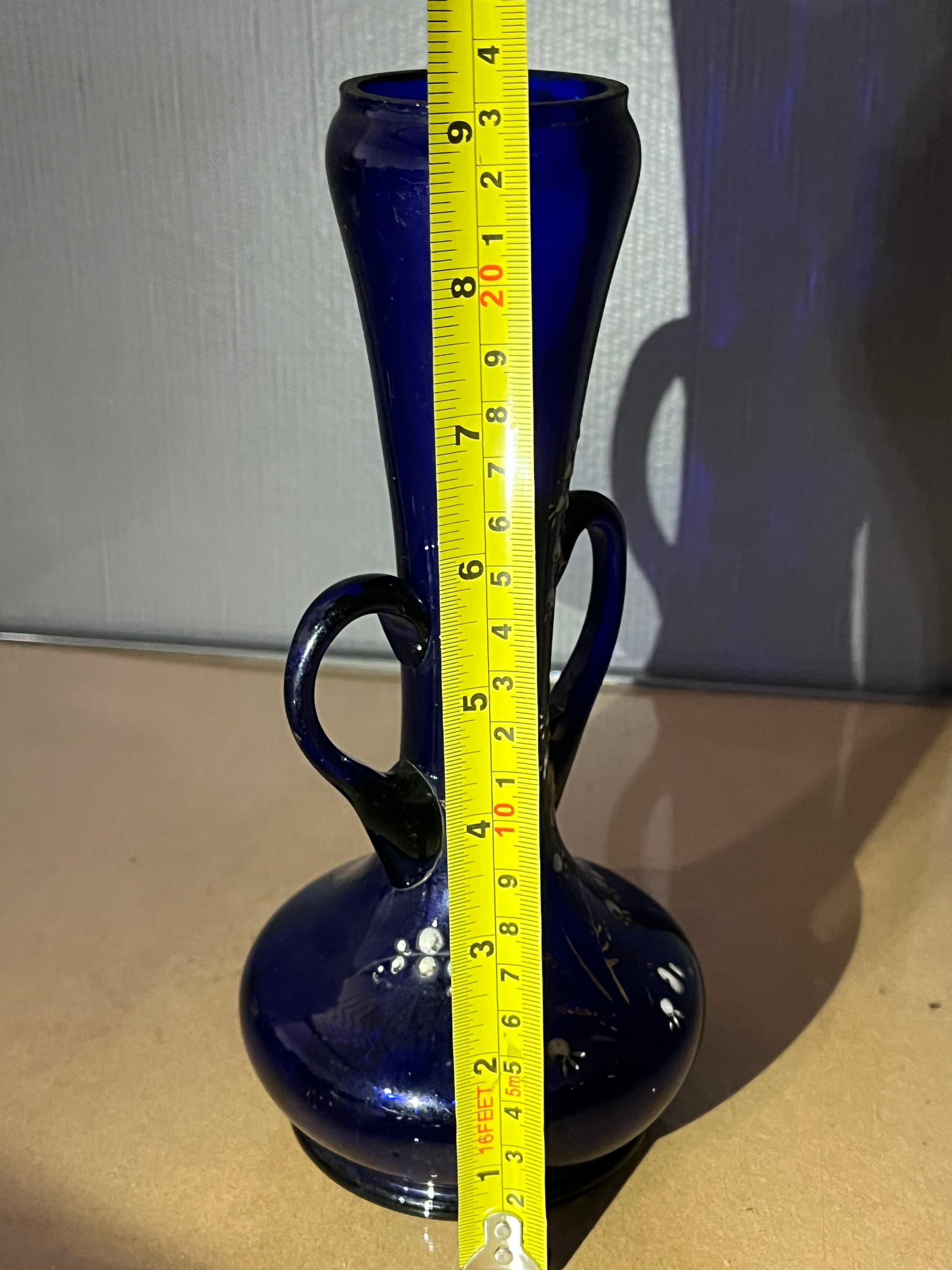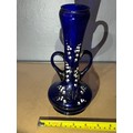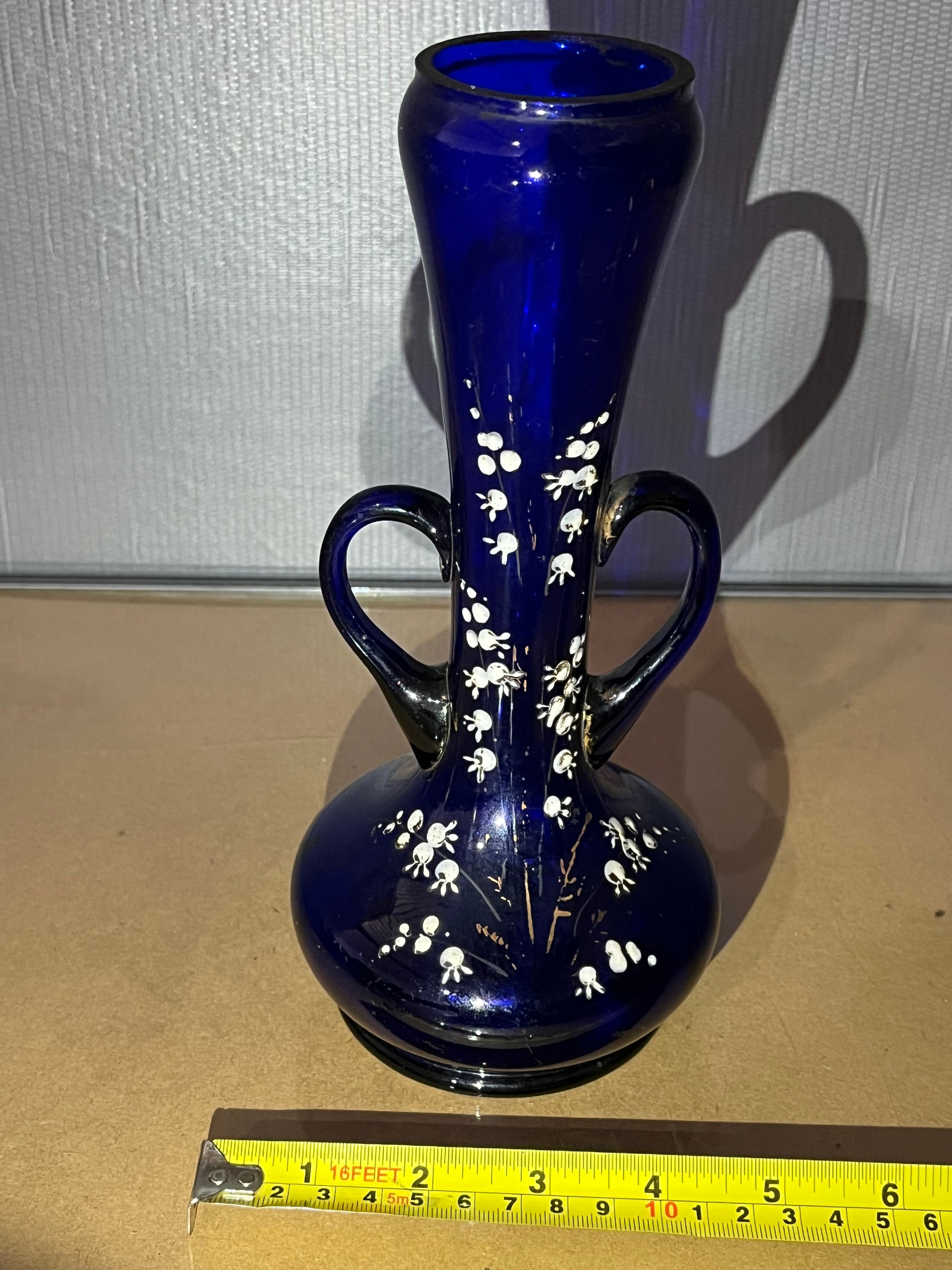 Cobalt blue Mary Gregory glass vase in Lily of the valley pattern
