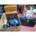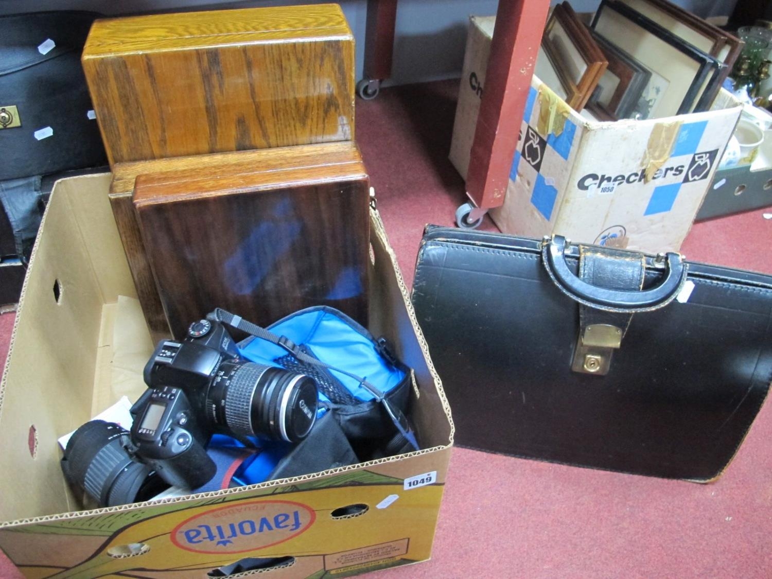 Sigma Zoom 28-200mm Lens, Canon Eos camera, briefcase, cutlery boxes, etc:- One Box