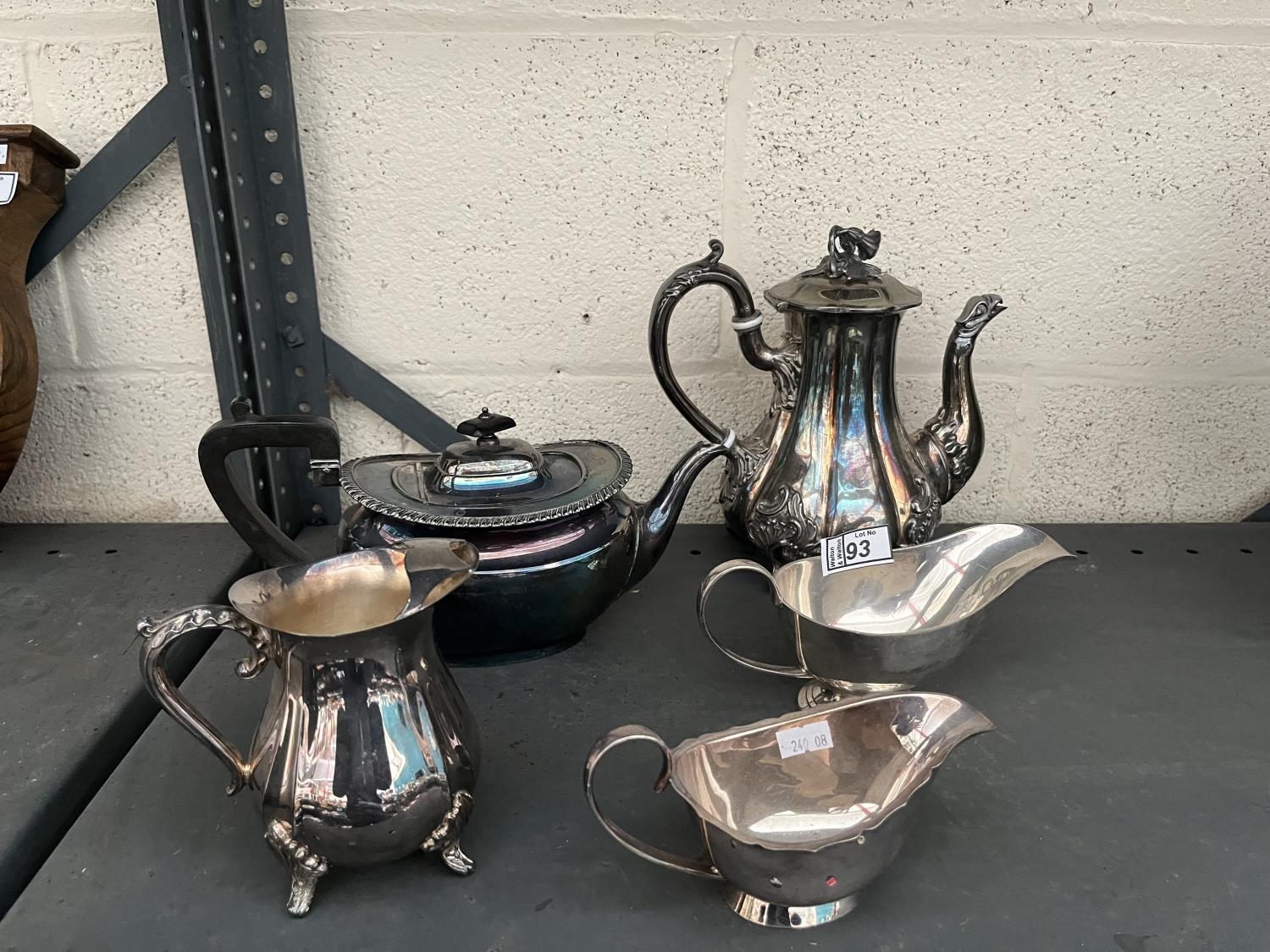 Antique teapot featuring an intricate 'bird head' spout and a Viners moustache cream jug etc