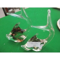 WEDGEWOOD SIGNED GLASS DUCK - CLEAR WITH BROWN DETAIL