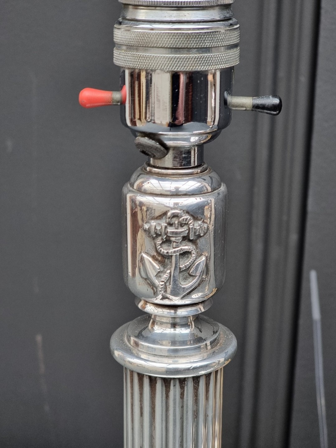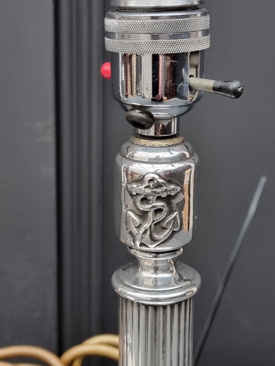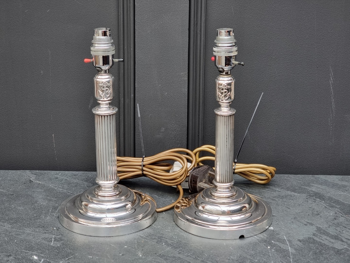 A pair of electroplated naval table lamps, each with fouled anchor motif, total height 29cm.