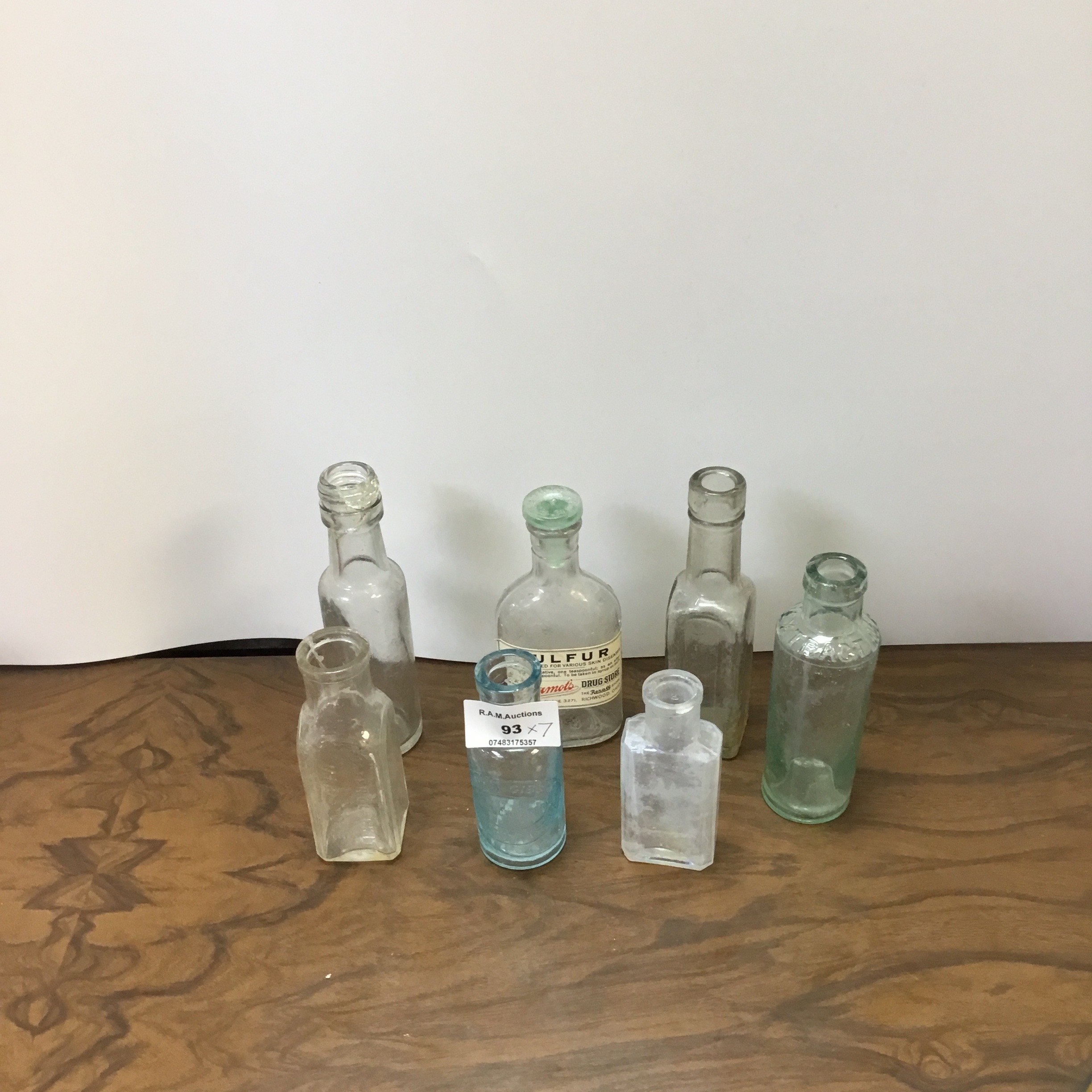 Clear Glass Medicine Bottles x7