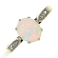 An opal ring with diamond shoulders, in platinum coloured metal, 2.2g, size M