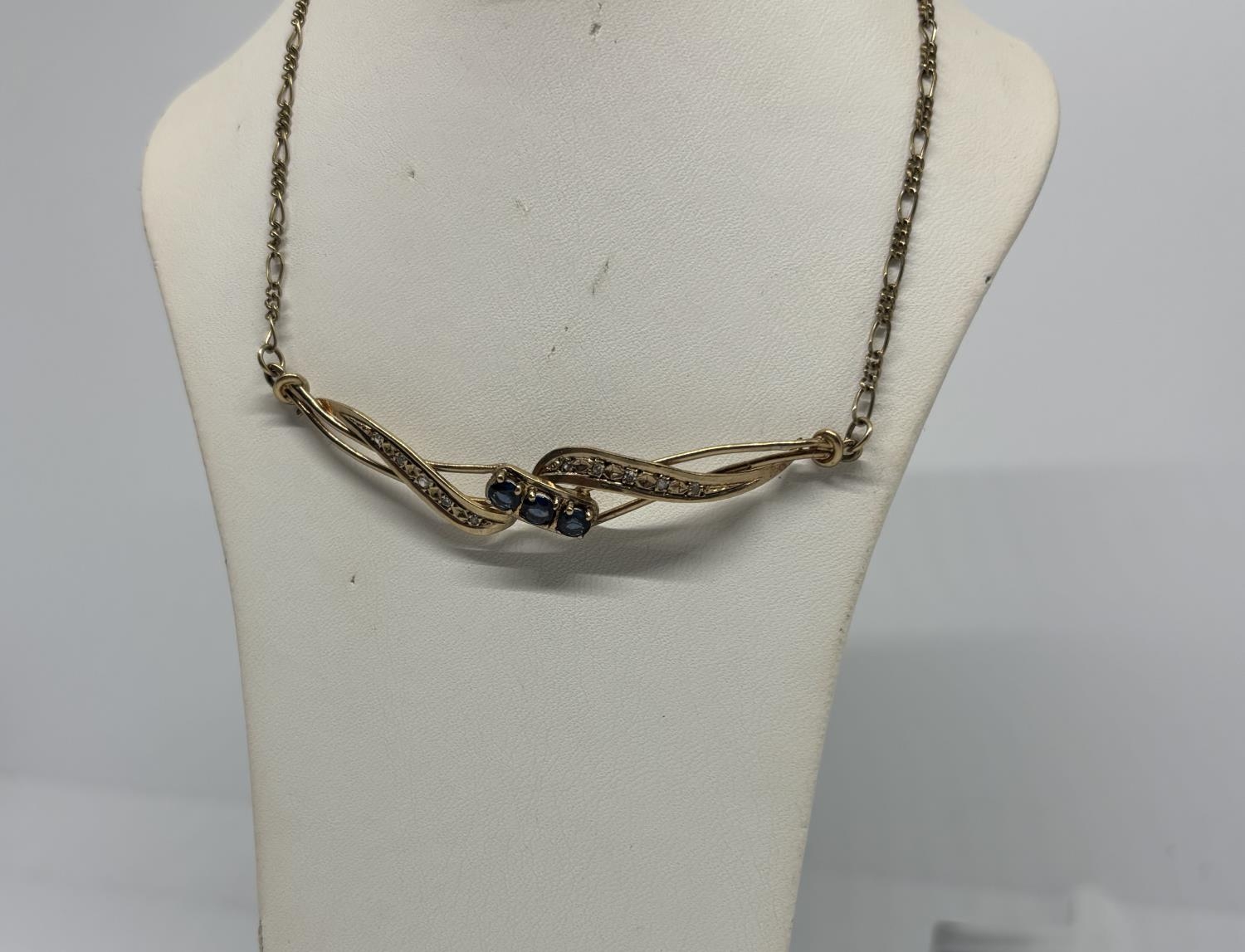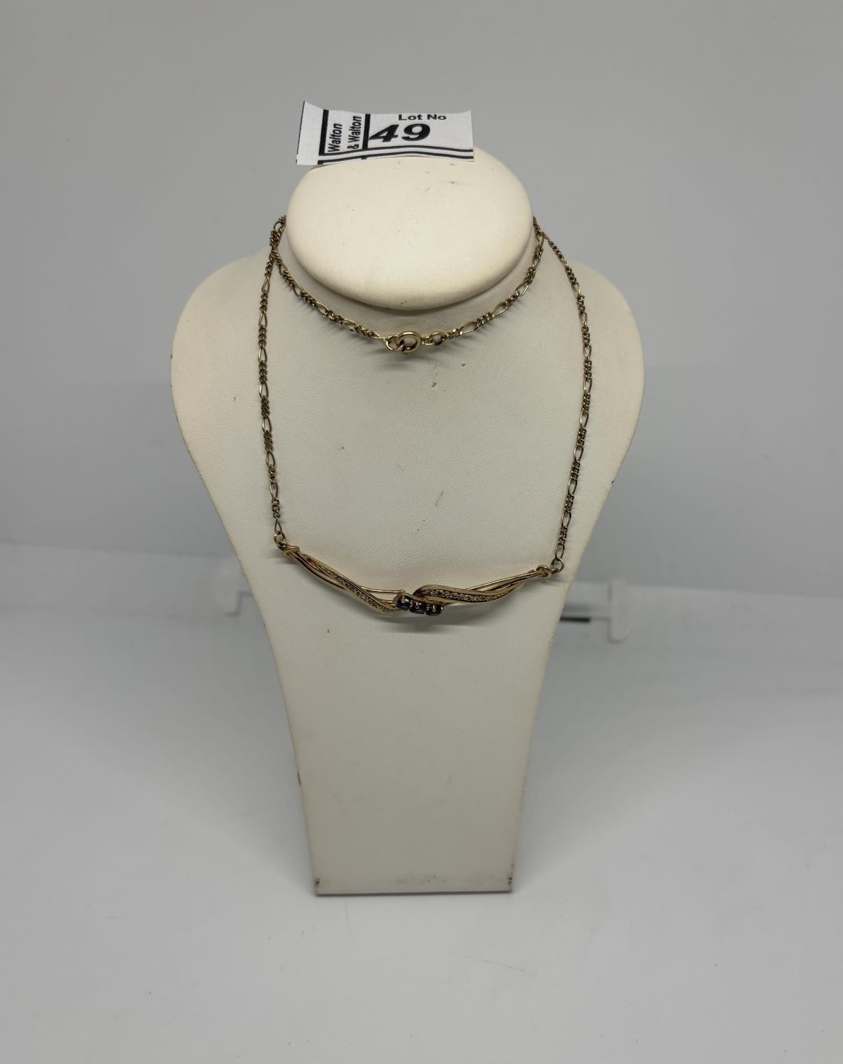 18" 9ct gold necklace including sapphire, 5.2g - Only 10% buyer's premium