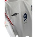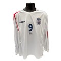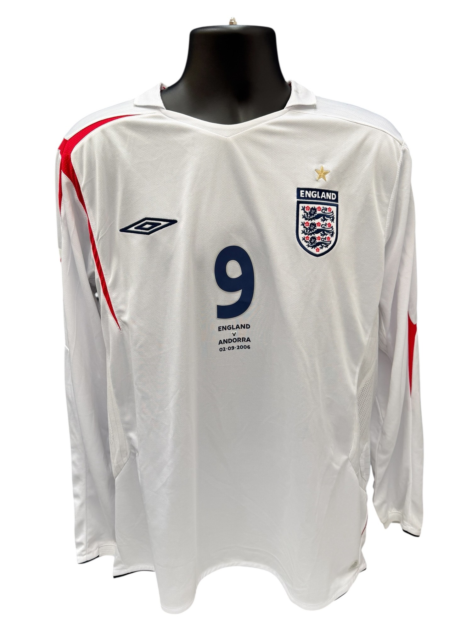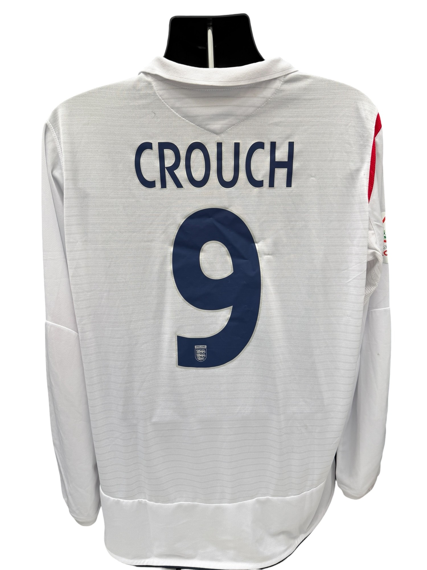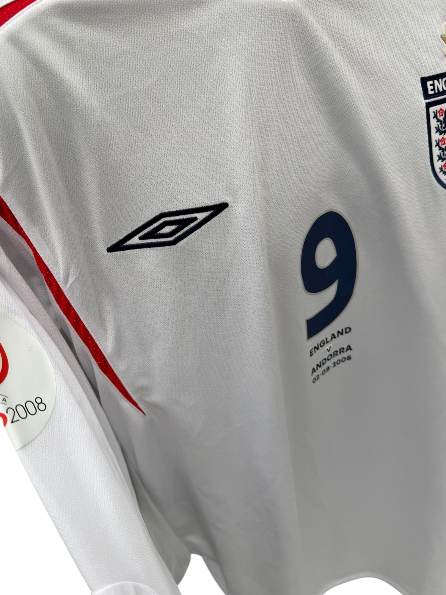 PETER CROUCH 2006 ENGLAND V ANDORRA MATCH ISSUED FOOTBALL SHIRT, LONG SLEEVED WHITE HOME SHIRT, EURO 2008 QUALIFIYING PATCH TO SLEEVE, MATCH DETAILS TO FRONT, CROUCH n9.