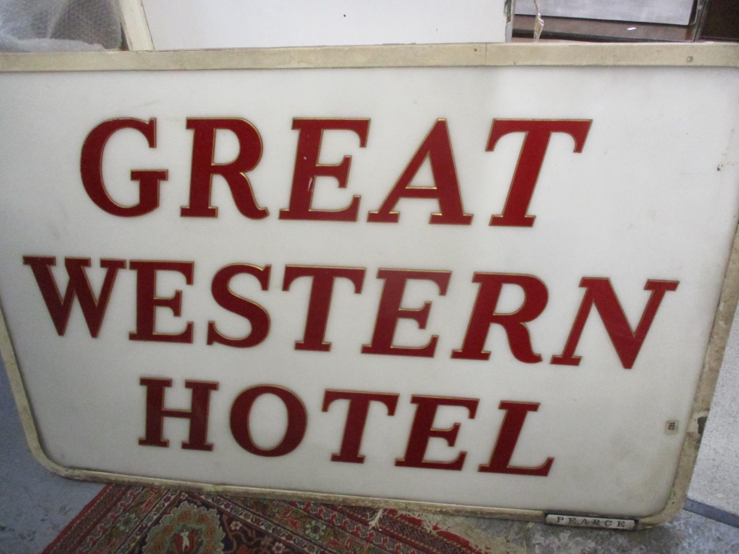 A large Great Western Hotel sign manufactured by Pearce, 56 x 36'Location: C-R