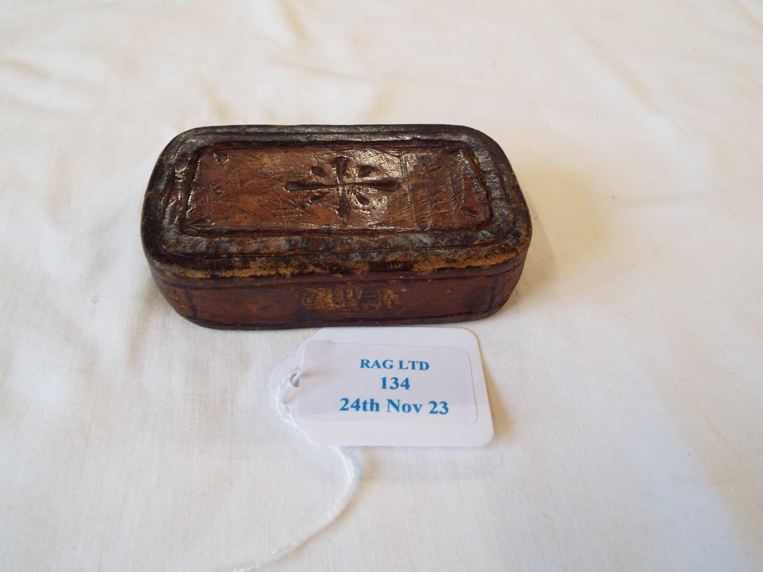 A leather covered Victorian paperweight stamped G.W.R