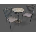 PLEASE COLLECT OR DONATE A stone inset circular garden table together with two matching chairs