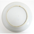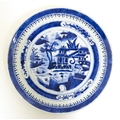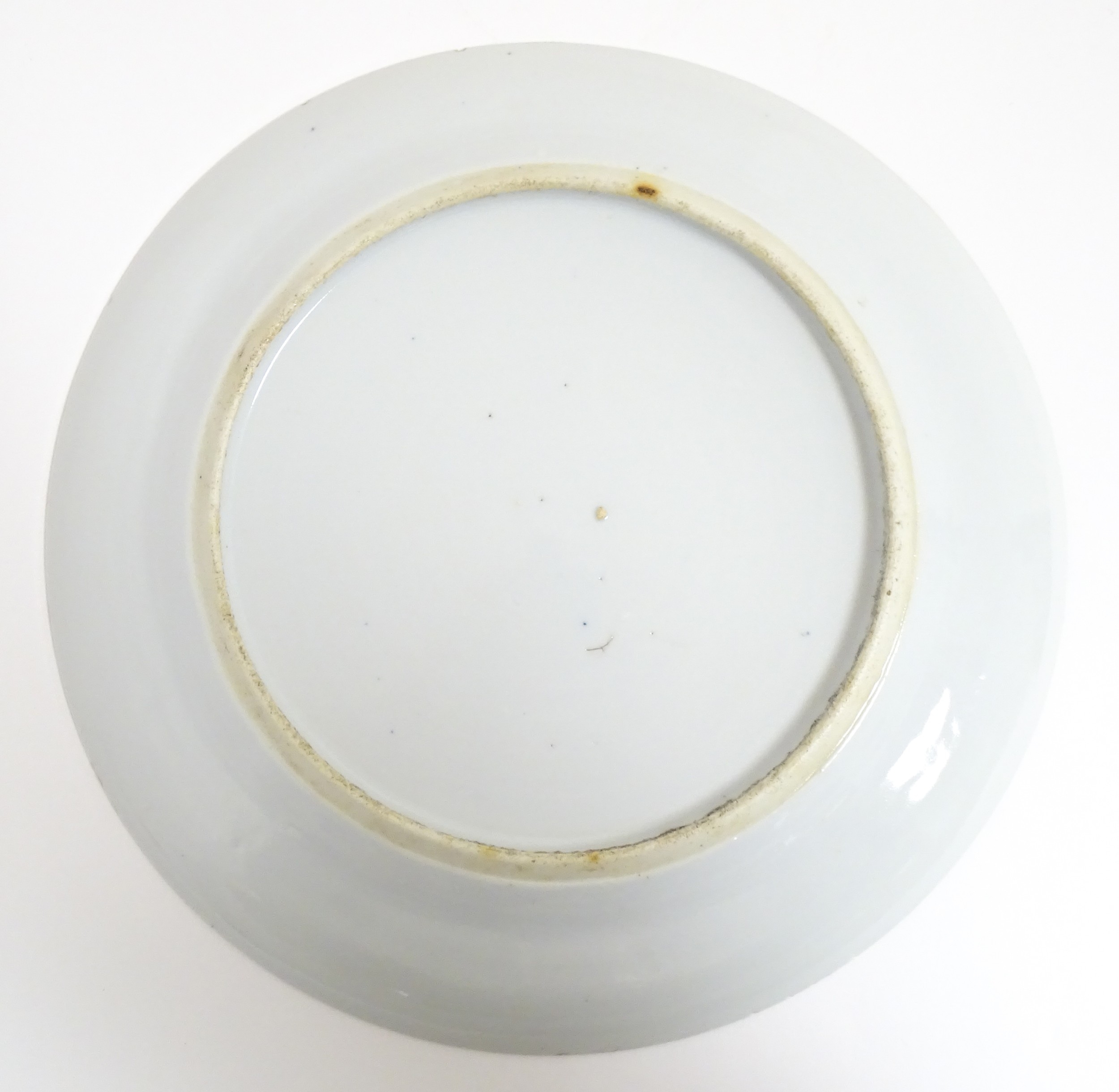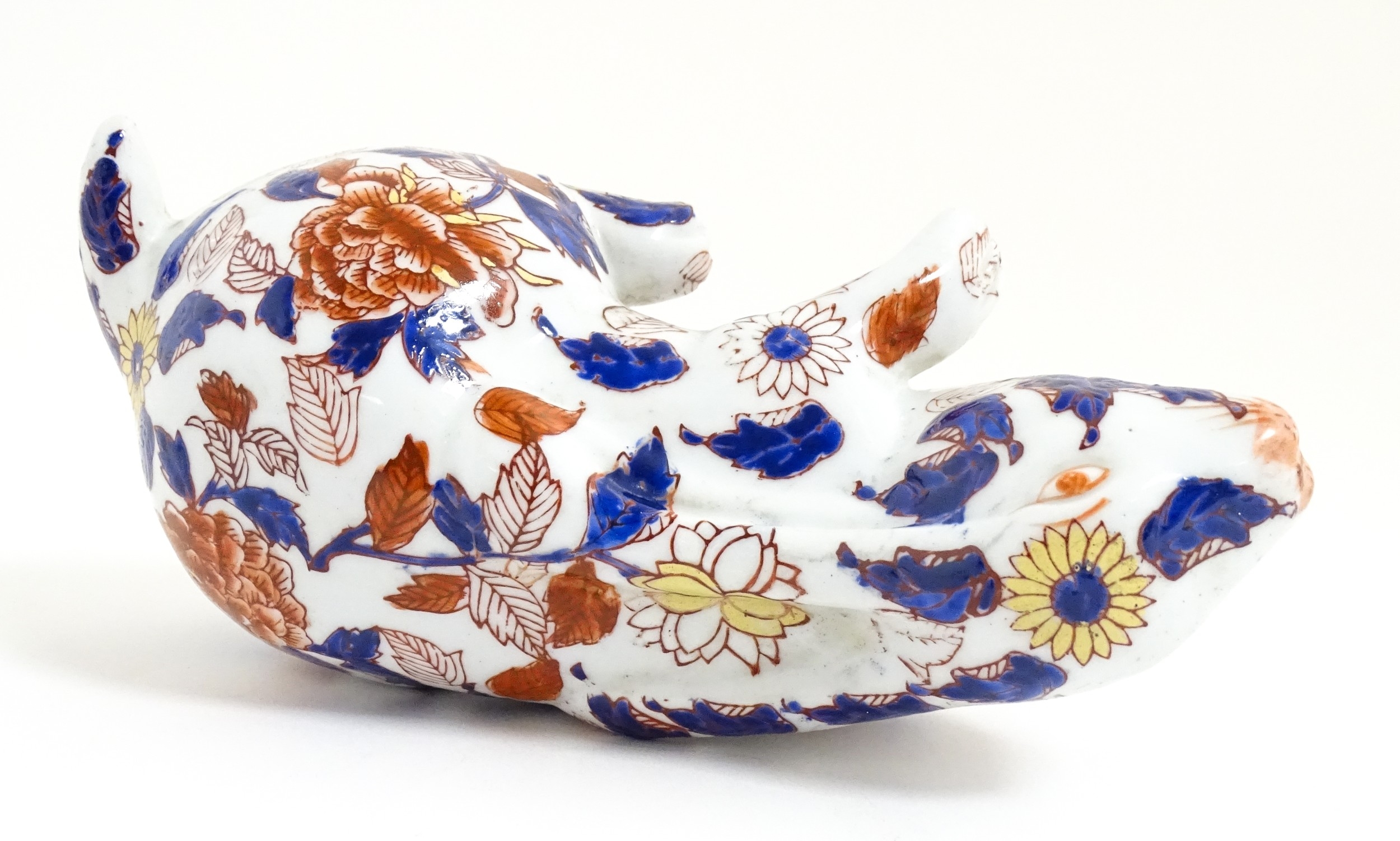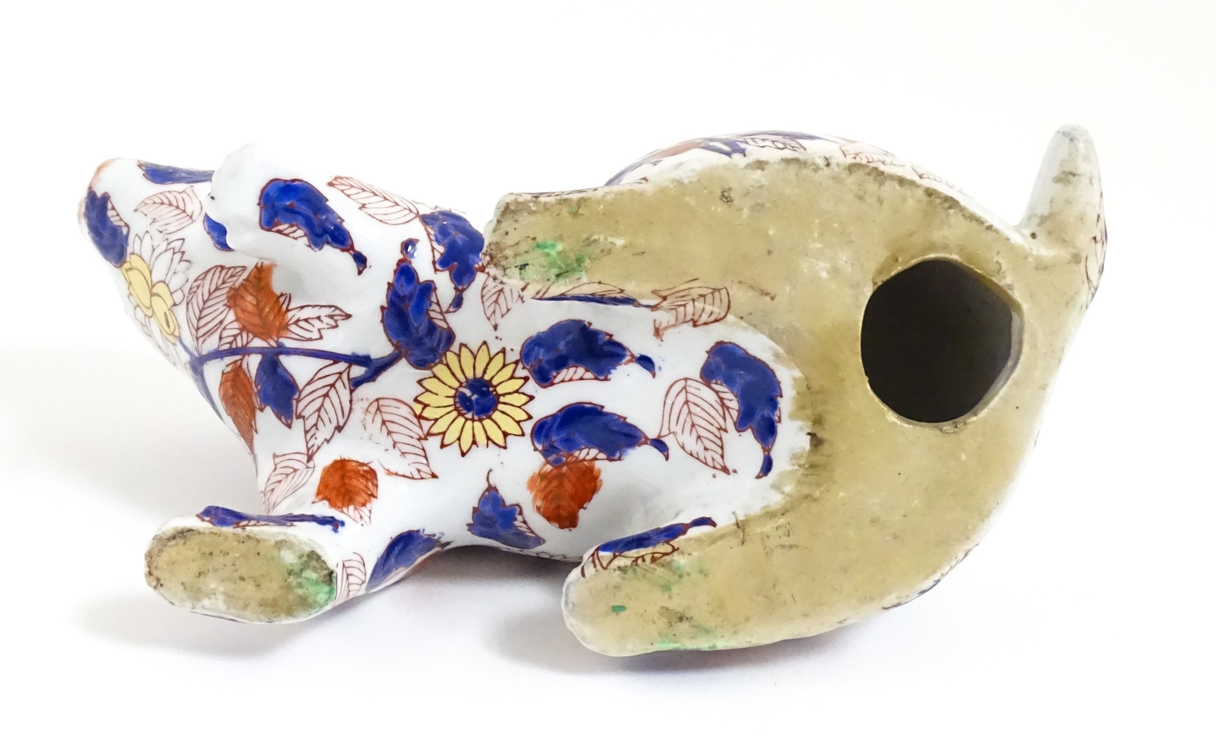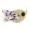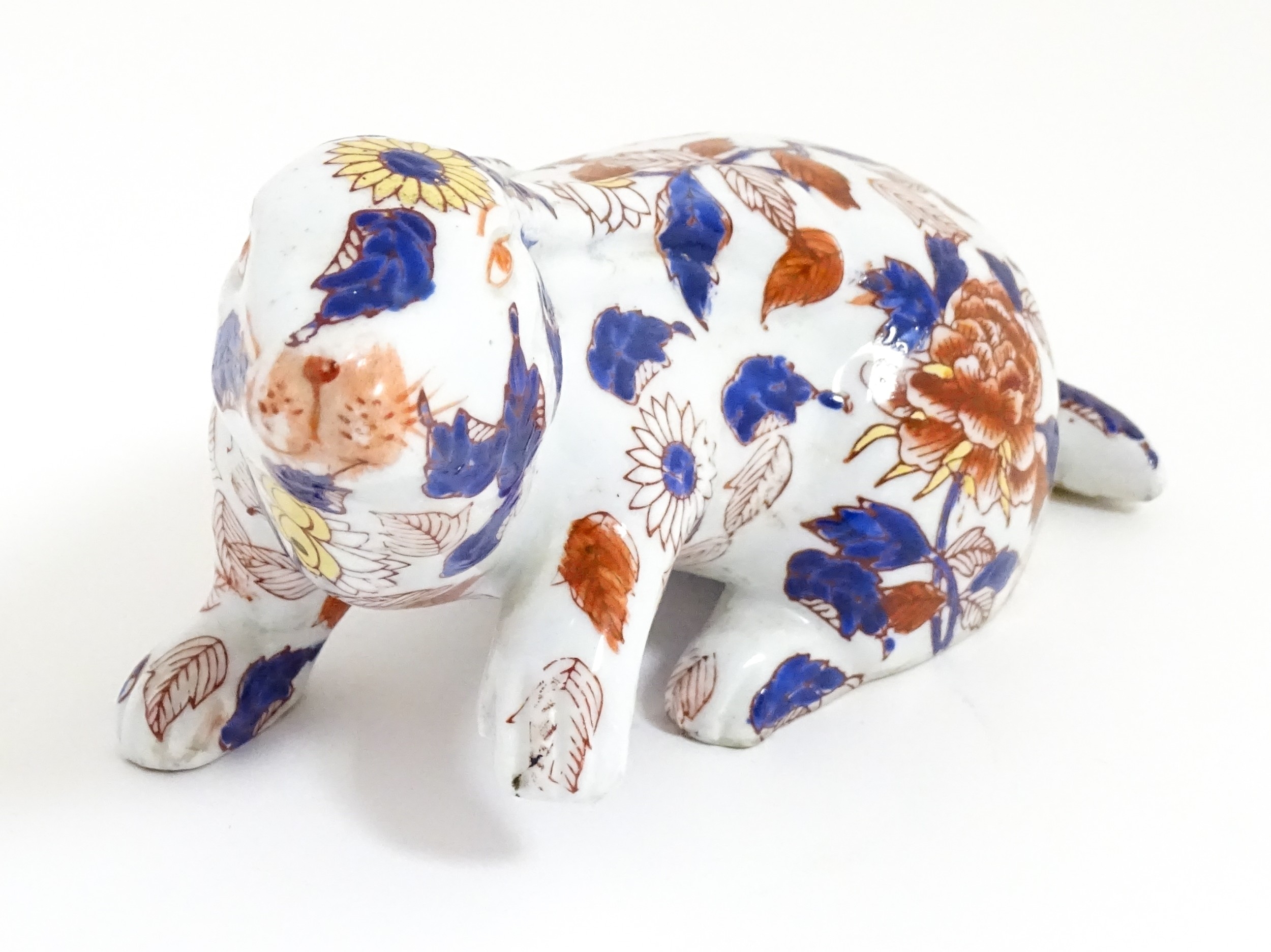 A Chinese export blue and white plate decorated with a river landscape with figures, pagodas, etc. Together with an Oriental model of a rabbit decorated in the Imari palette. Plate approx. 9 1/2" wide (2)