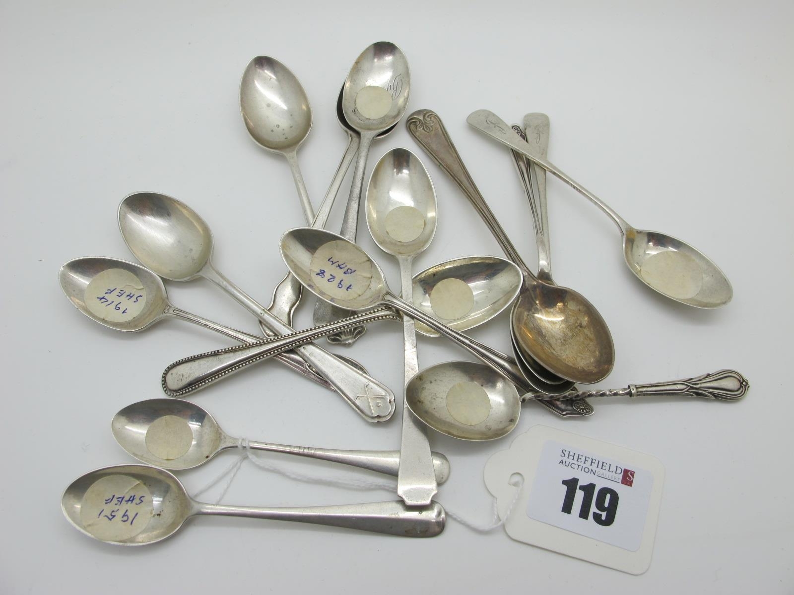 Fifteen Assorted Hallmarked Silver Teaspoons, (various makers and dates) some initialled (155grams). (15)