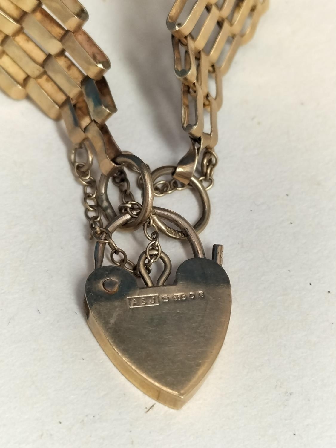 9ct Gold 375 Gate Bracelet (6") with Heart Locket. Weight 13...