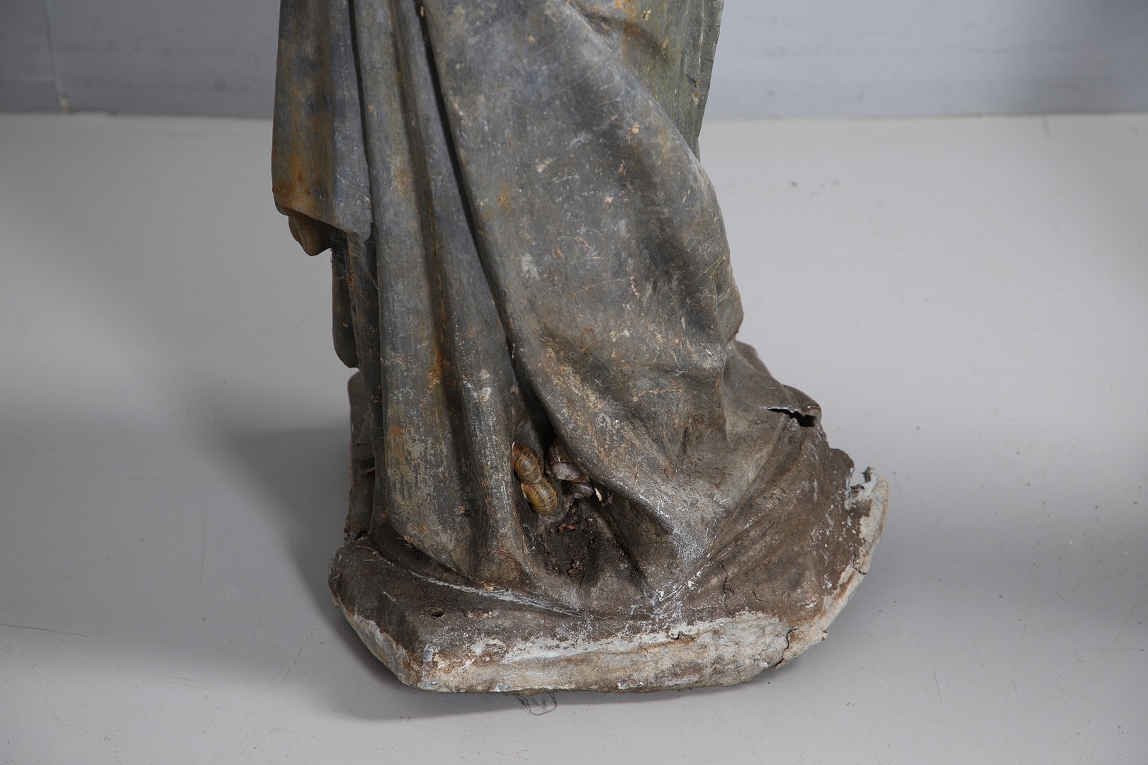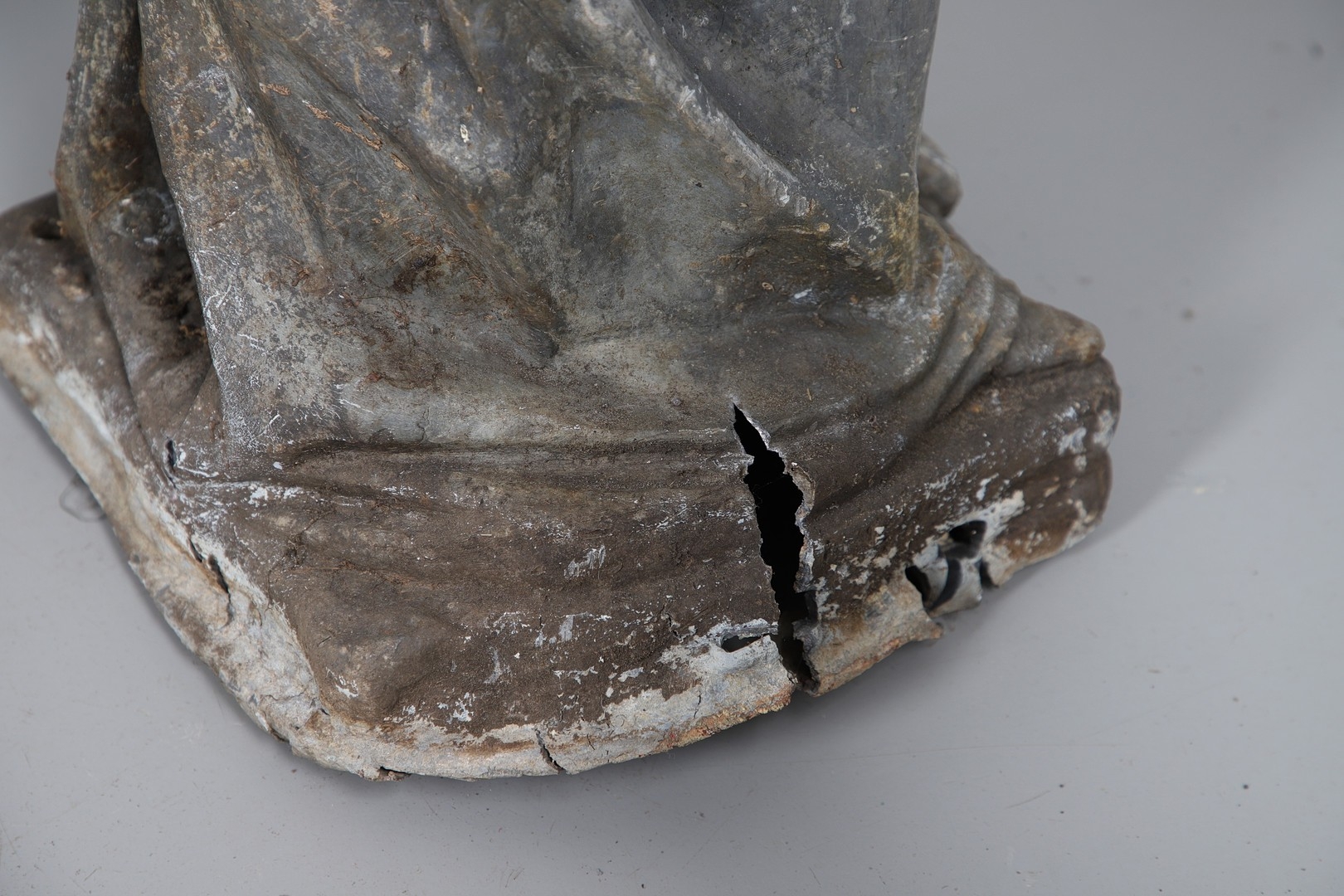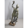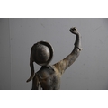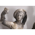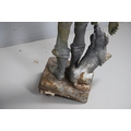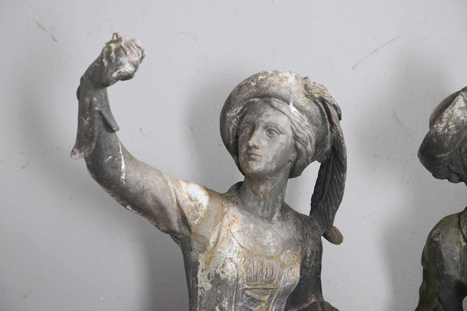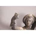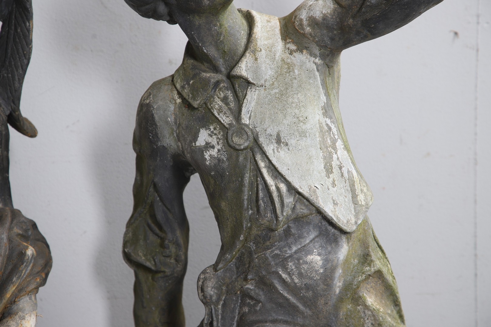 Lady - bird missing, large split to base, section of feather from cap missing. Repairs to arms.