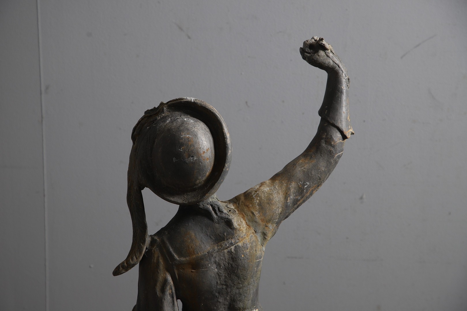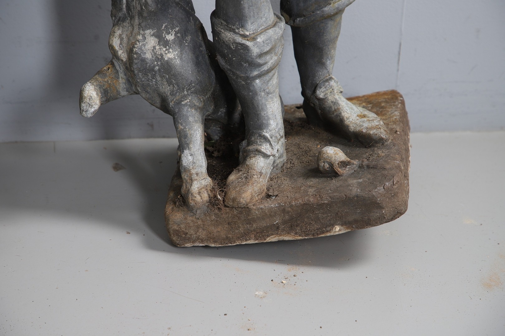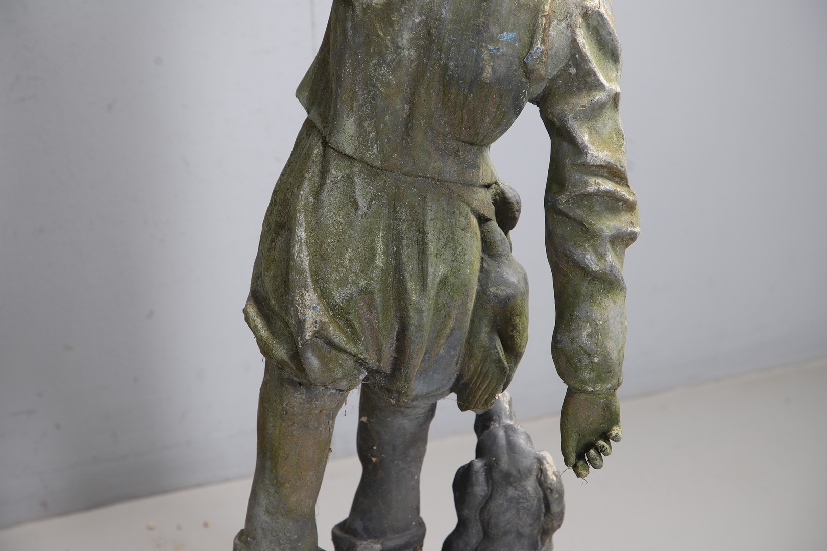 Gentleman - Does not stand upright alone due to partially filled base. Repair to arms.