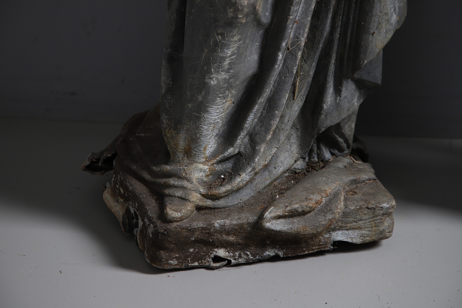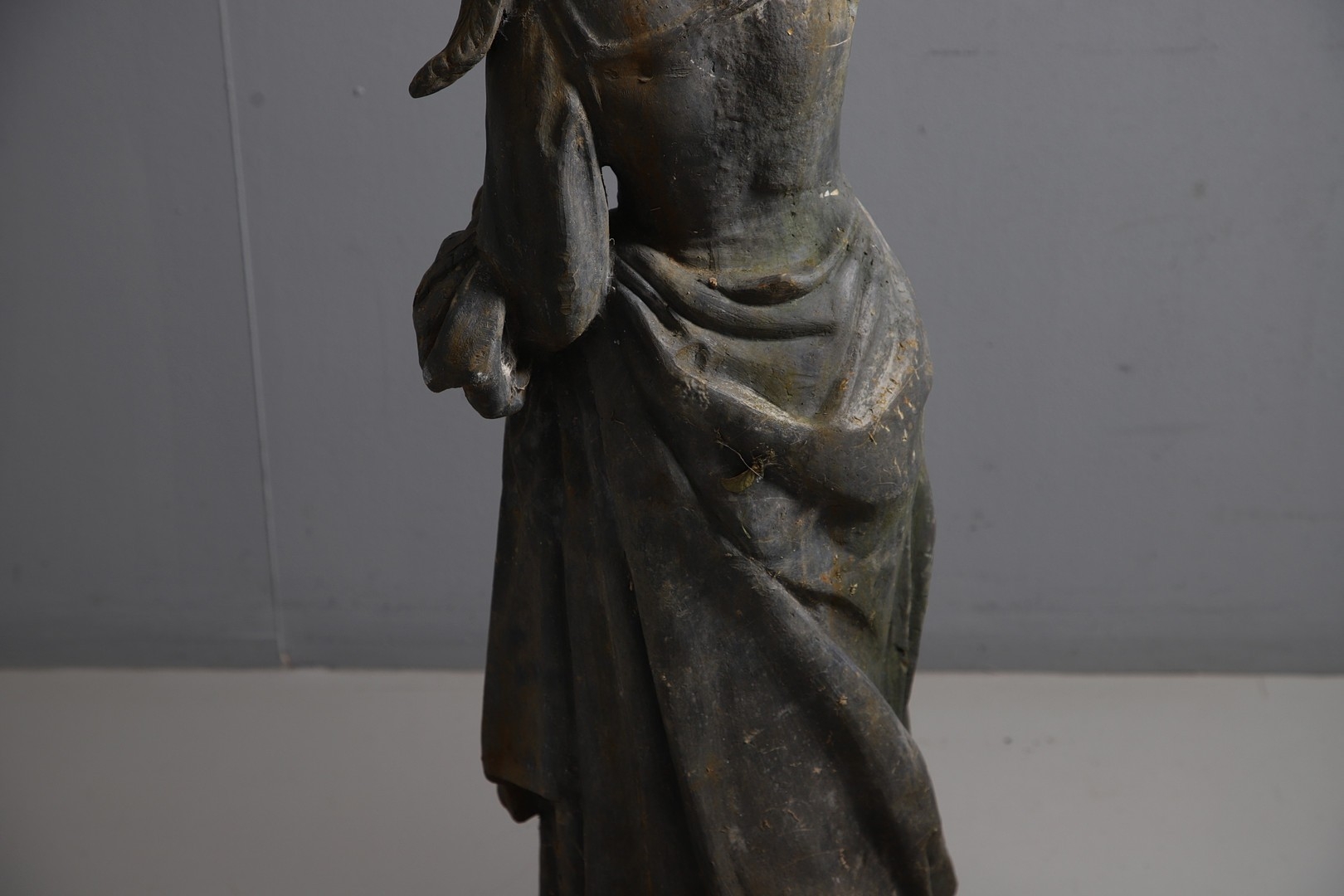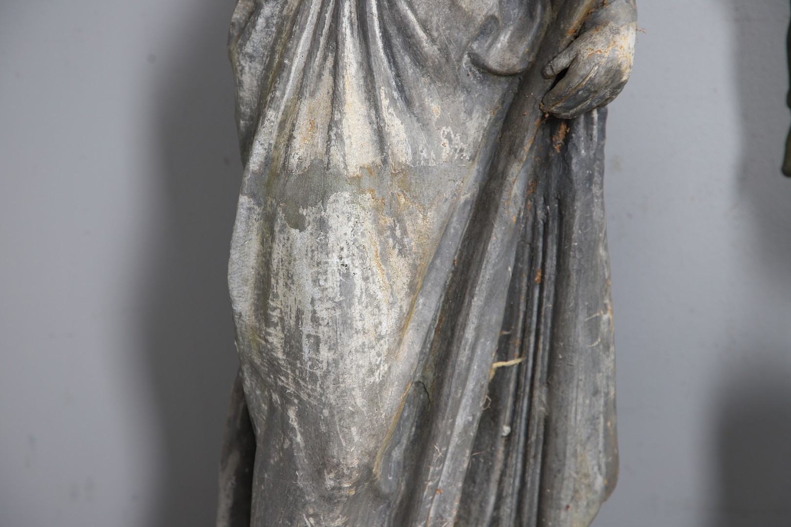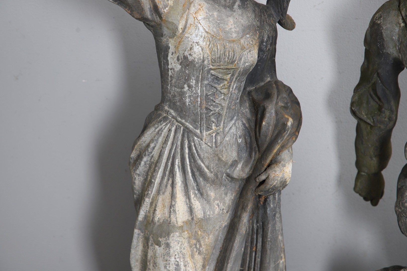 Gentleman - Does not stand upright alone due to partially filled base. Repair to arms.