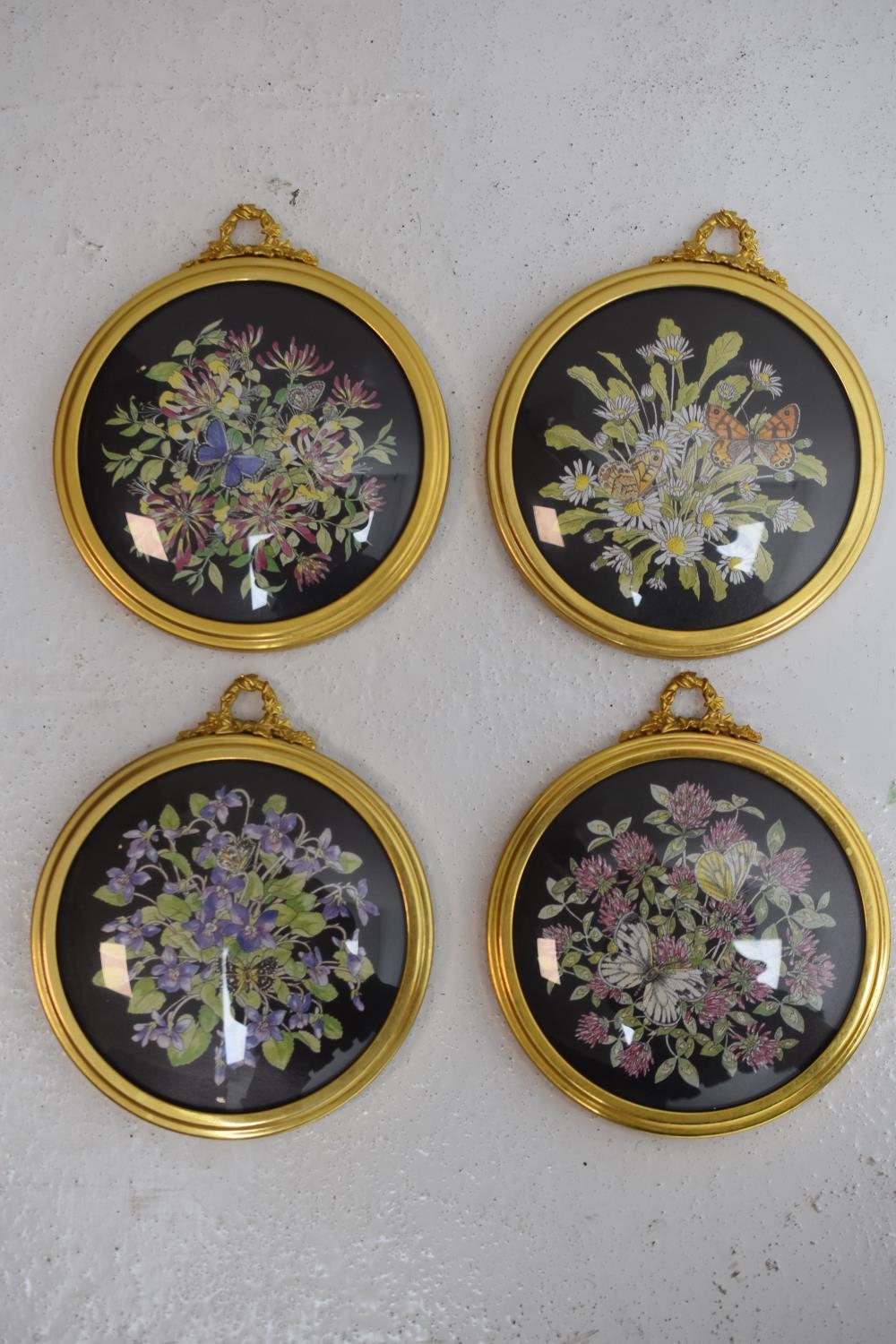 Four Miniature Framed and Glazed World of Peter Bates Prints by Julie Moorland 4" Dia