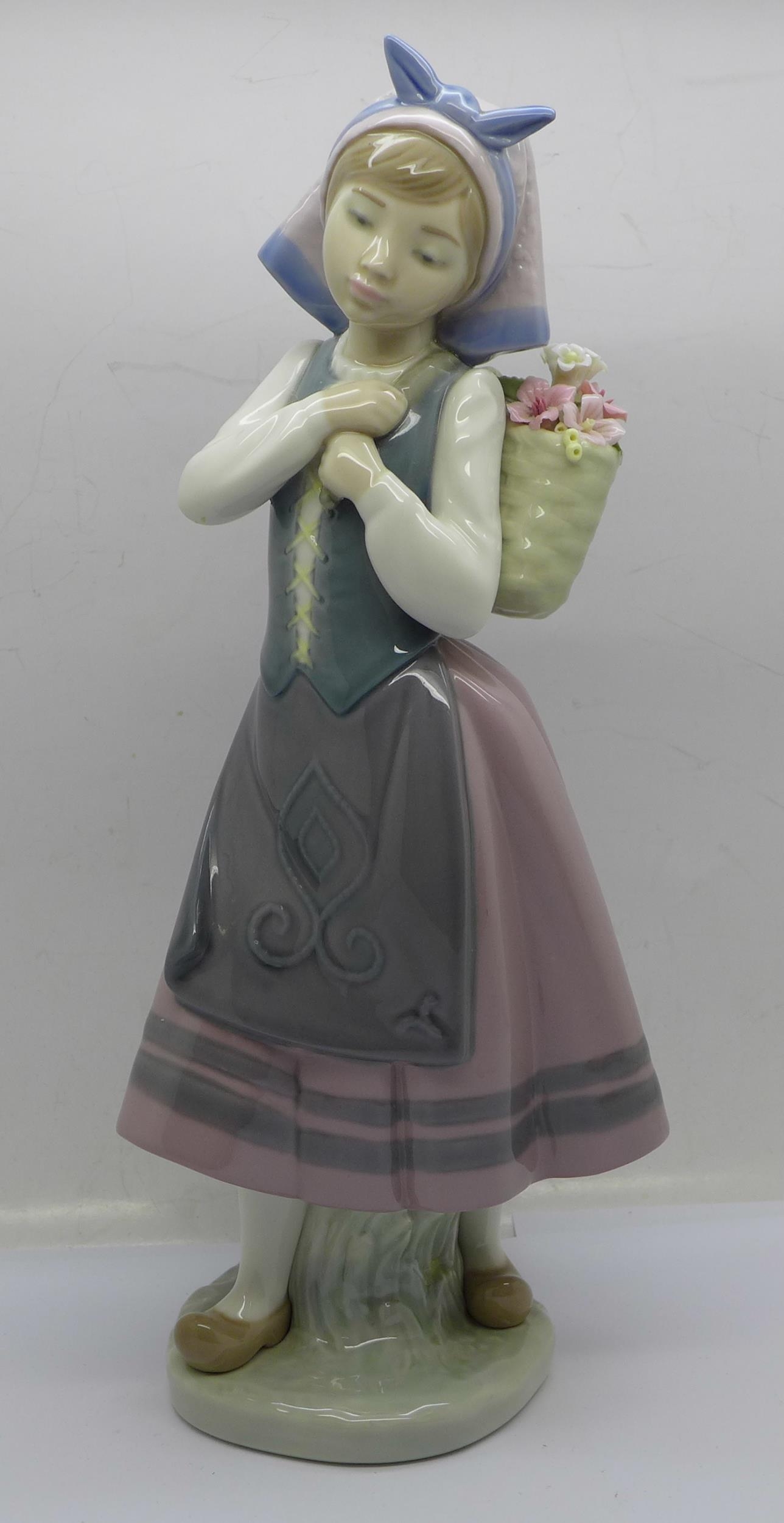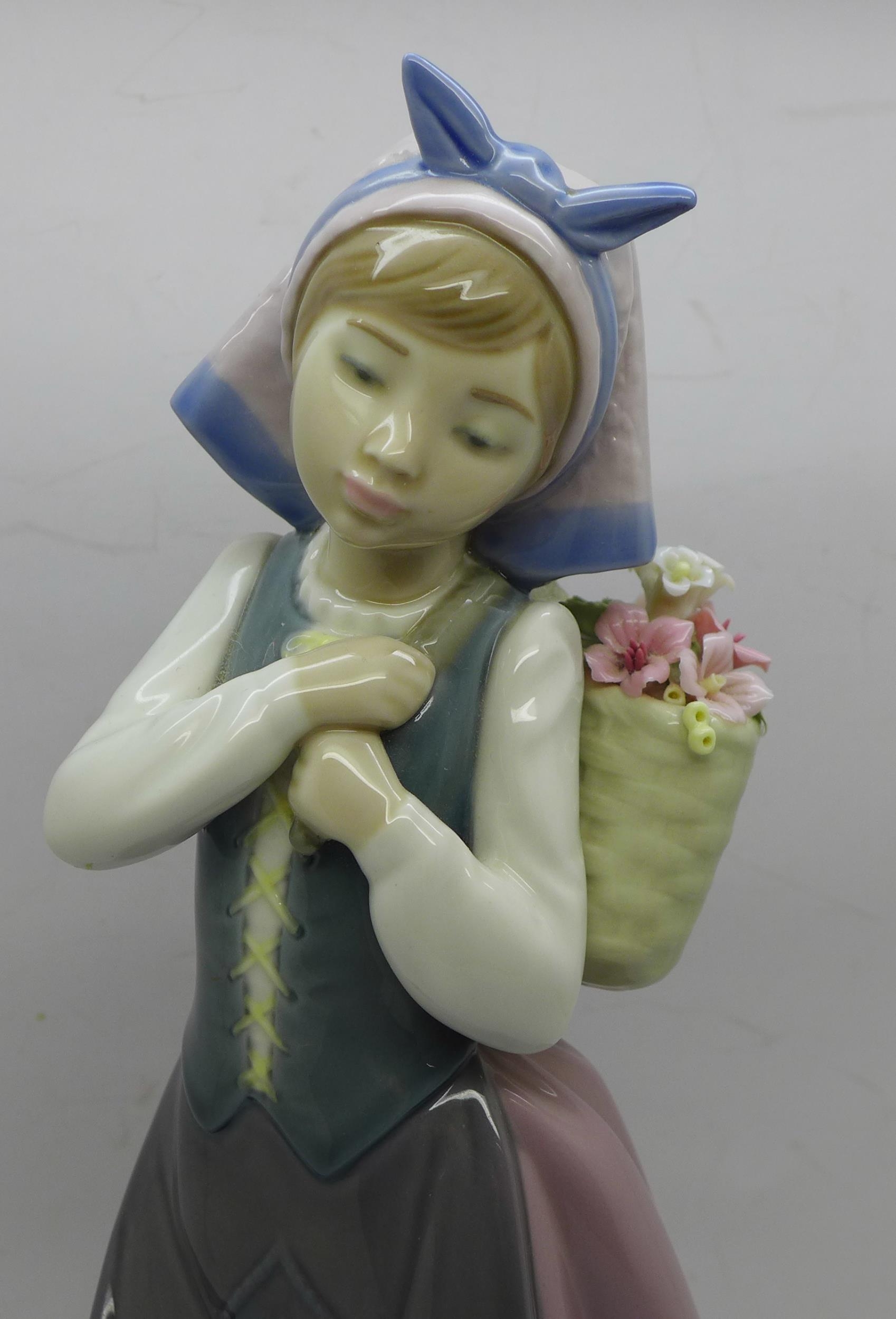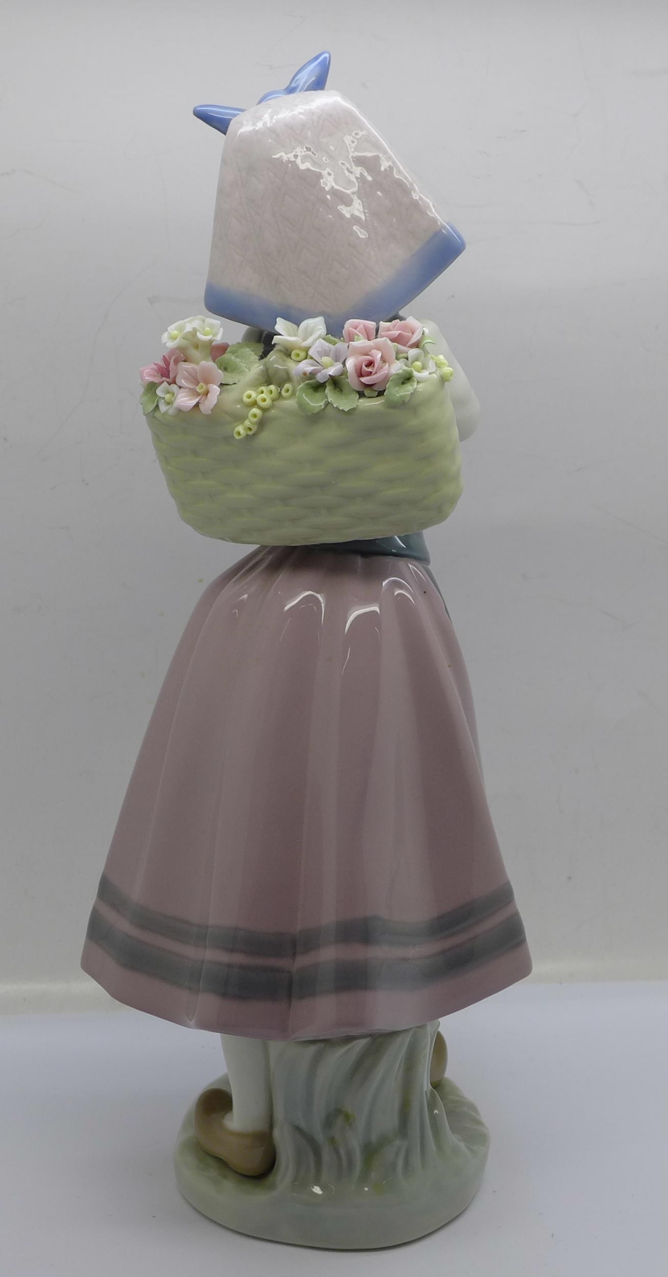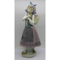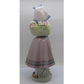 A Lladro Dutch girl with back flower basket, 26cm