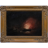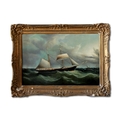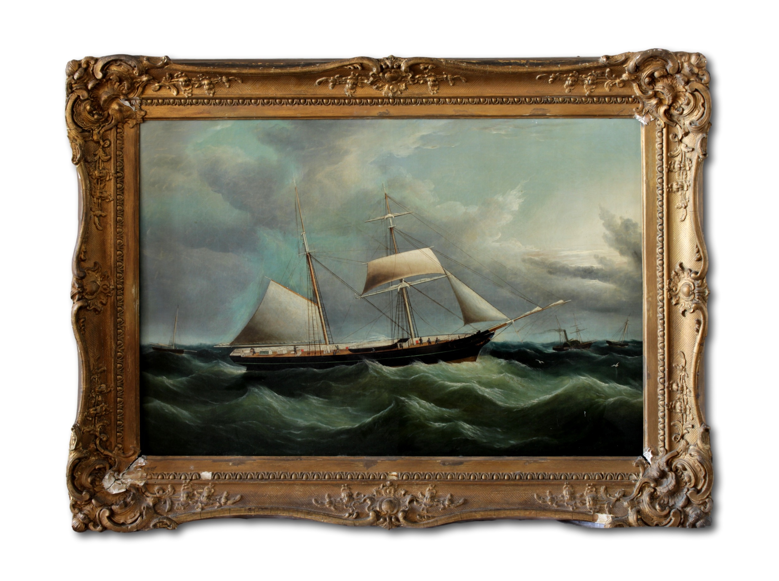 Philip John Ouless (Jersey, 1817-1885), The brigantine "ACCRA" and other shippping, oil on canvas, name of ship on bow, unsigned, original swept gilded frame, 49 x 74.9cm. *The 138 ton brigantine ACCRA was built at the Deslandes shipyard in Jersey in 1857, owned by George Deslandes, and operated until 1874.