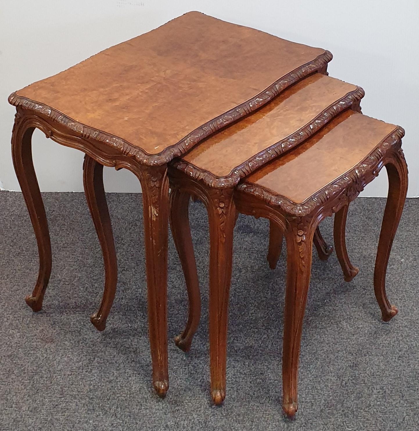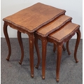 Walnut Nest of Three Tables, H:58 x W:61 x D:45cm