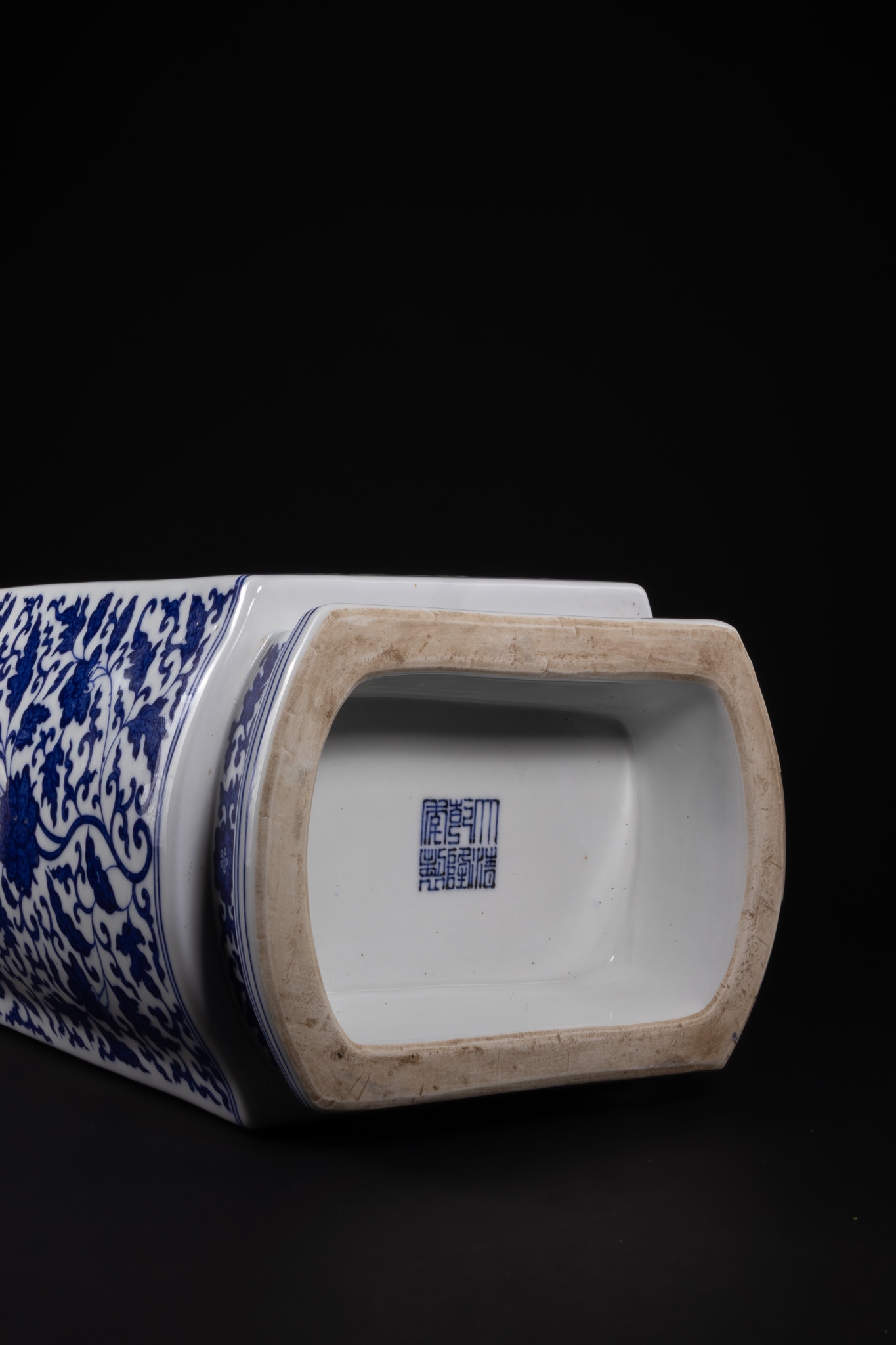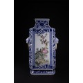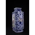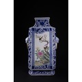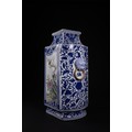 A Large Chinese Blue and White Hexagonal Porcelain Vase with Painted Floral and Bird Panels, Qianlong Mark.