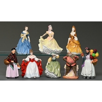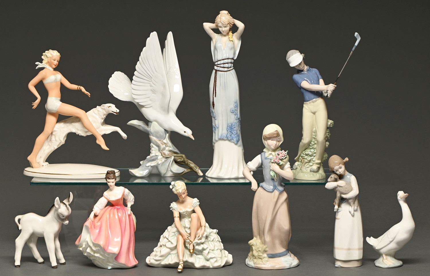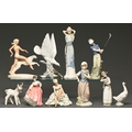 Ten Royal Doulton and continental figures and models, second half 20th c, to include Schaubach Kunst and Lladro, 33cm h, printed mark
