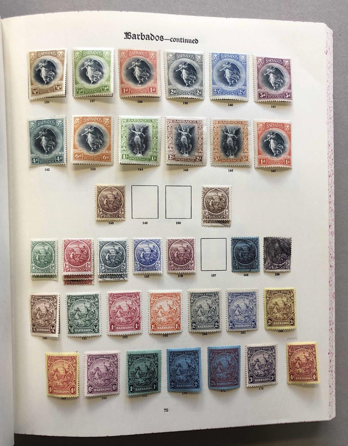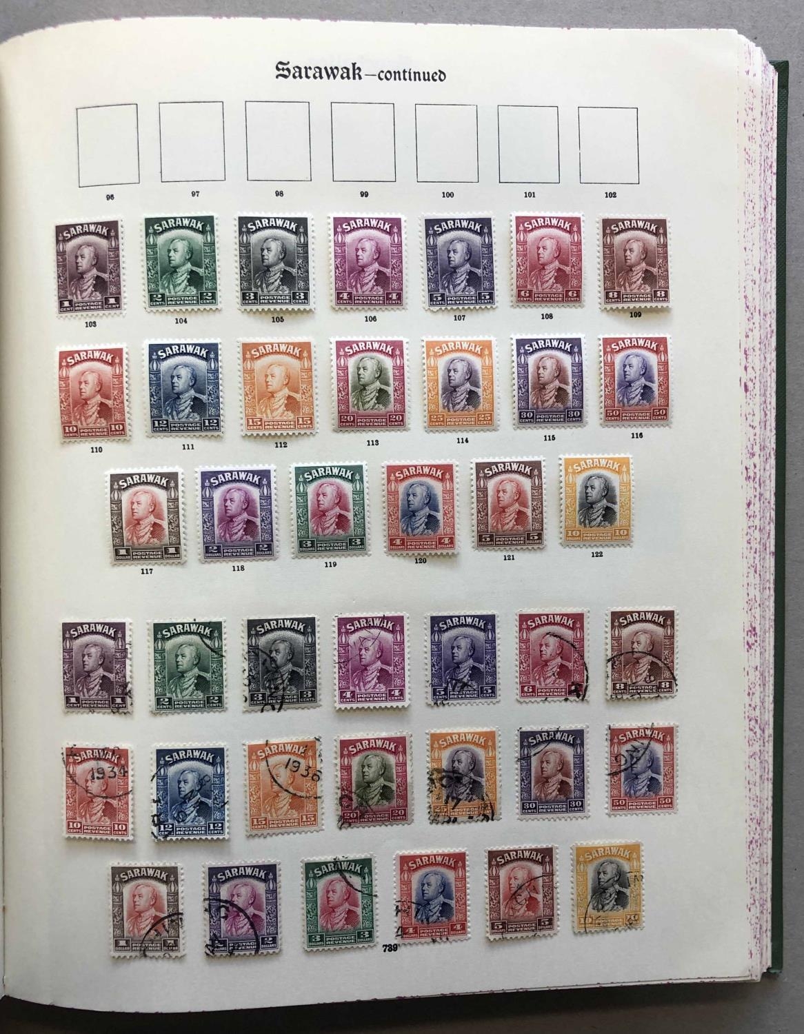 PAIR OF SG "NEW IMPERIAL" ALBUMS for British Empire issues to 1936. Both in superb condition with no marks and housing a mint (mostly) and used collection. Many countries represented to a greater or lesser degree, with strength in around 30 of these. Includes good content of Barbados, incl. 1897 Jubilee set and several complete sets to 3/- (4) and 5/- values, Ceylon to 10r (2) with useful earlies, Levant with vals. to 24pi on 5/- and 90pi on 5/-, etc., COGH extensive range of seated 'Hope' types, Egypt incl. 1934 UPU set to £1, good range of Indian Convention States (several 100s), Jamaica useful ranges to KGV 10/-, NZ 'Chalons' (c.19), N. Rhodesia KGV vals. to 10/-, fine mint Papua 'Lakatoi' ranges to 2/6d (3) and 10/-, St. Helena KGV to 10/-, St. Lucia QV to 10/- used, KEVII 1903 & 1907 sets to 5/-, KGV to 10/-, etc., Sarawak 1903 sets to $10 mint (SG £325) and used (SG £350), Seychelles QV vals. to 2r.25 ang KGV to 5r, Sierra Leone KGV mint to 10/- & £1, etc., plus many other smaller countries with triple figure catalogue values. Ideal for splitting or continuation. Inspection recommended. (Very many 100s)