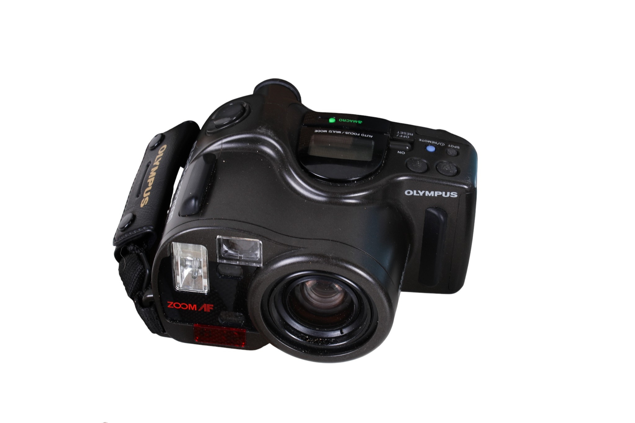 Two compact digital cameras and a film camera and accessories. Including Canon IXUS 50, model PC1150, with battery and charger, etc.