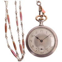 Case - several small chips to edge of enamel caseback and heavy surface wear, all stones present, most are discoloured, gilding on bezel worn on high points