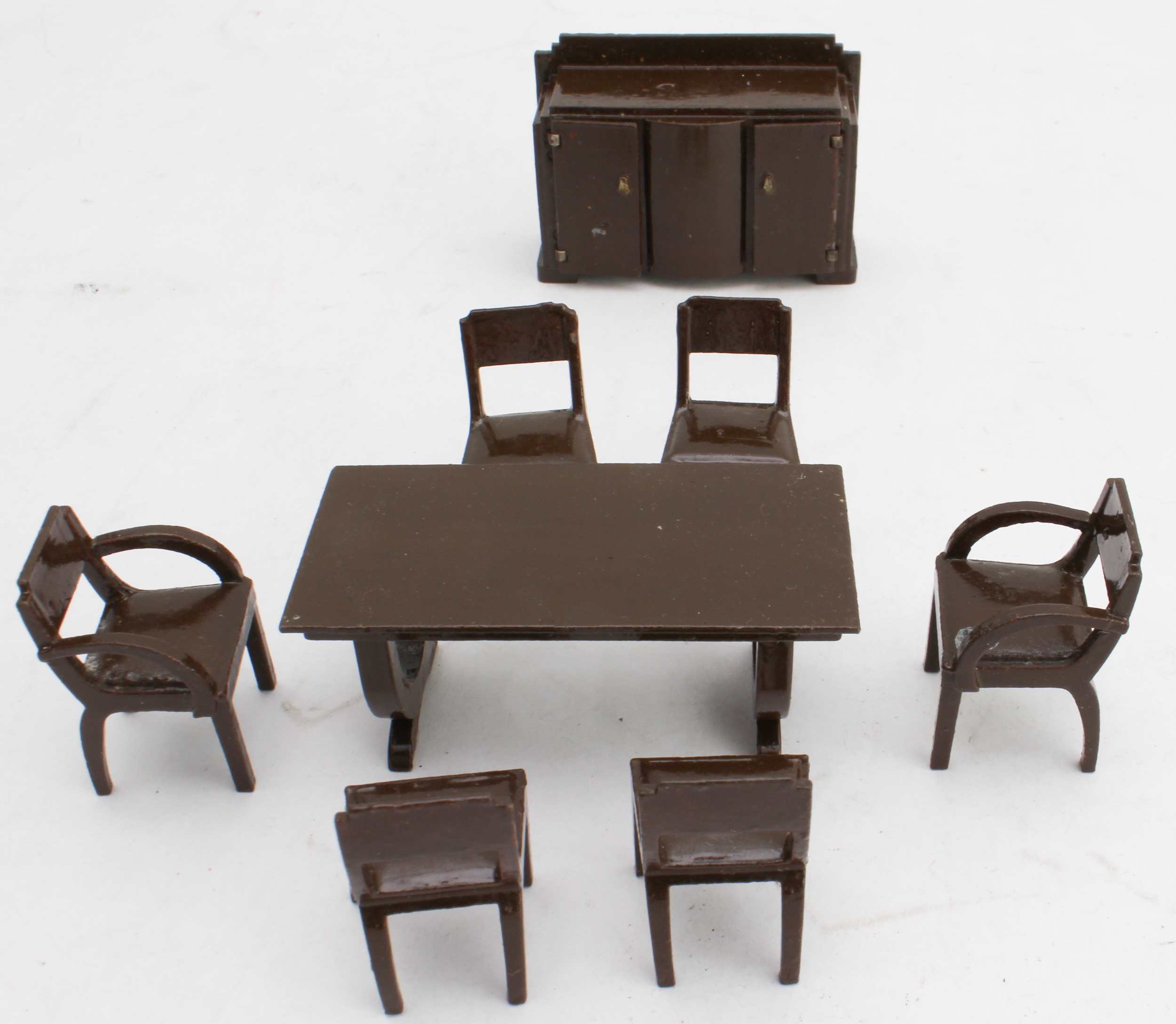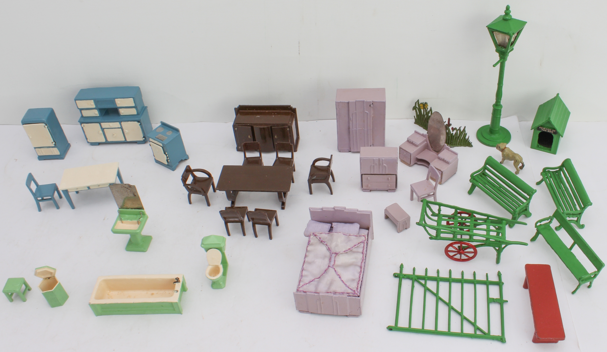 The complete 23-piece Dinky Toys 'Dolly Varden' doll's house furniture set and 11 other pieces: