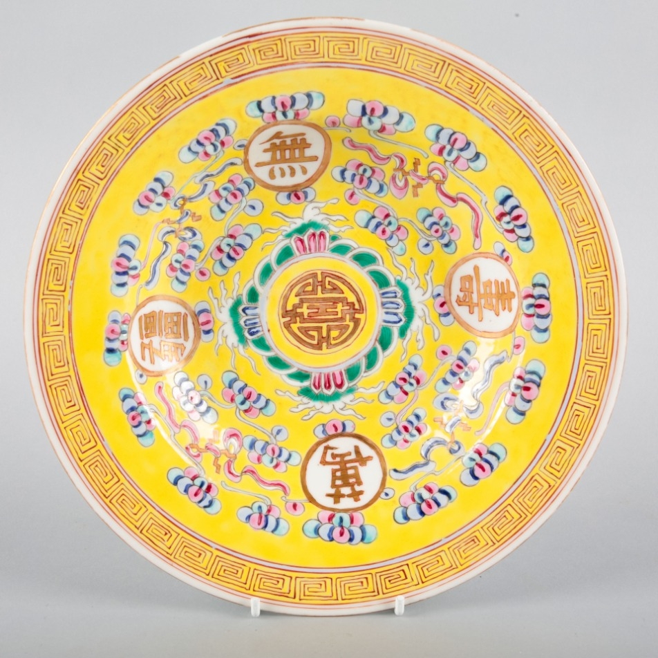 Plates of this type are typically produced in celebration of important birthdays, the characters translating to 'May you enjoy infinite longevity'.
