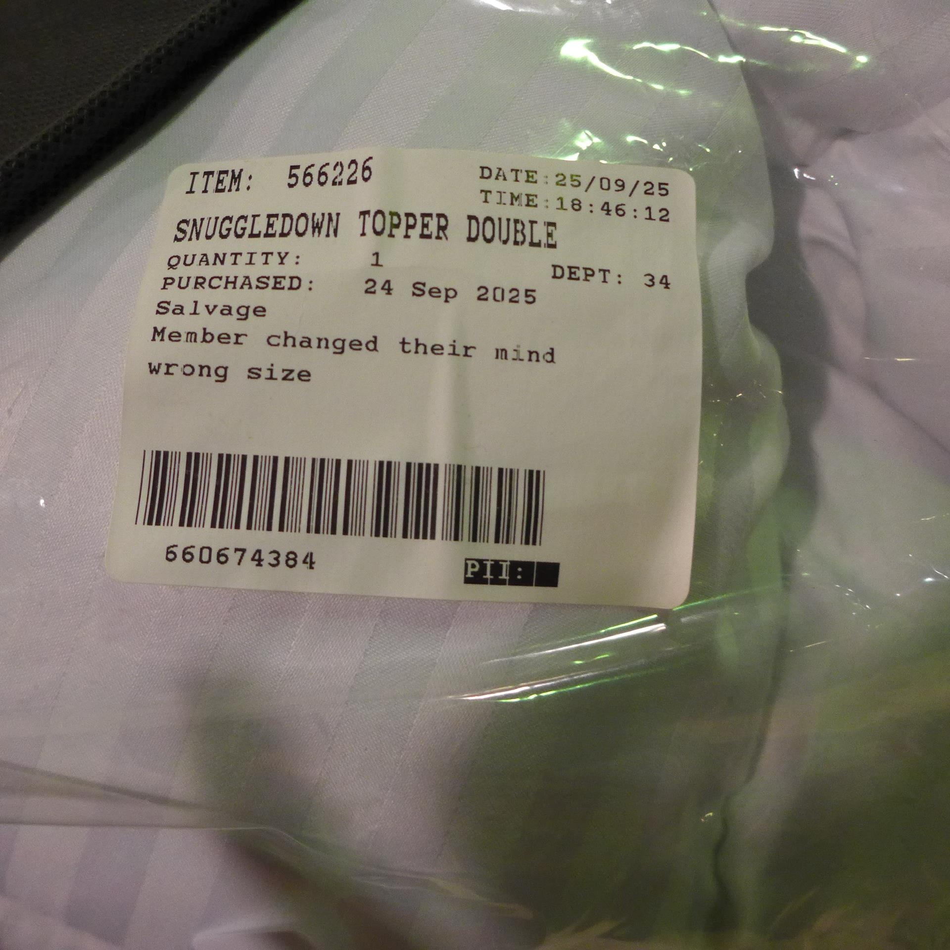 Snuggledown extra deep filled double mattress topper (372-409) *This lot is subject to VAT