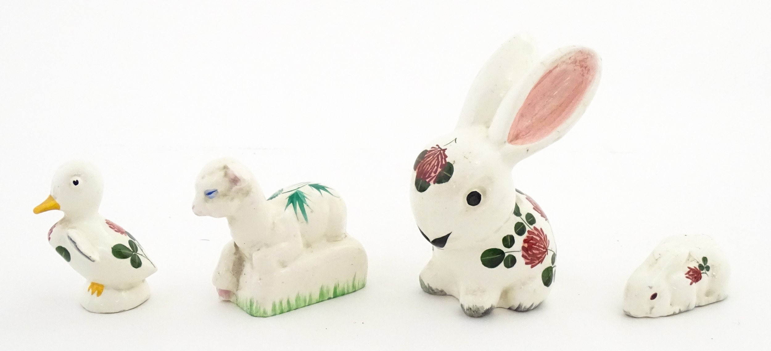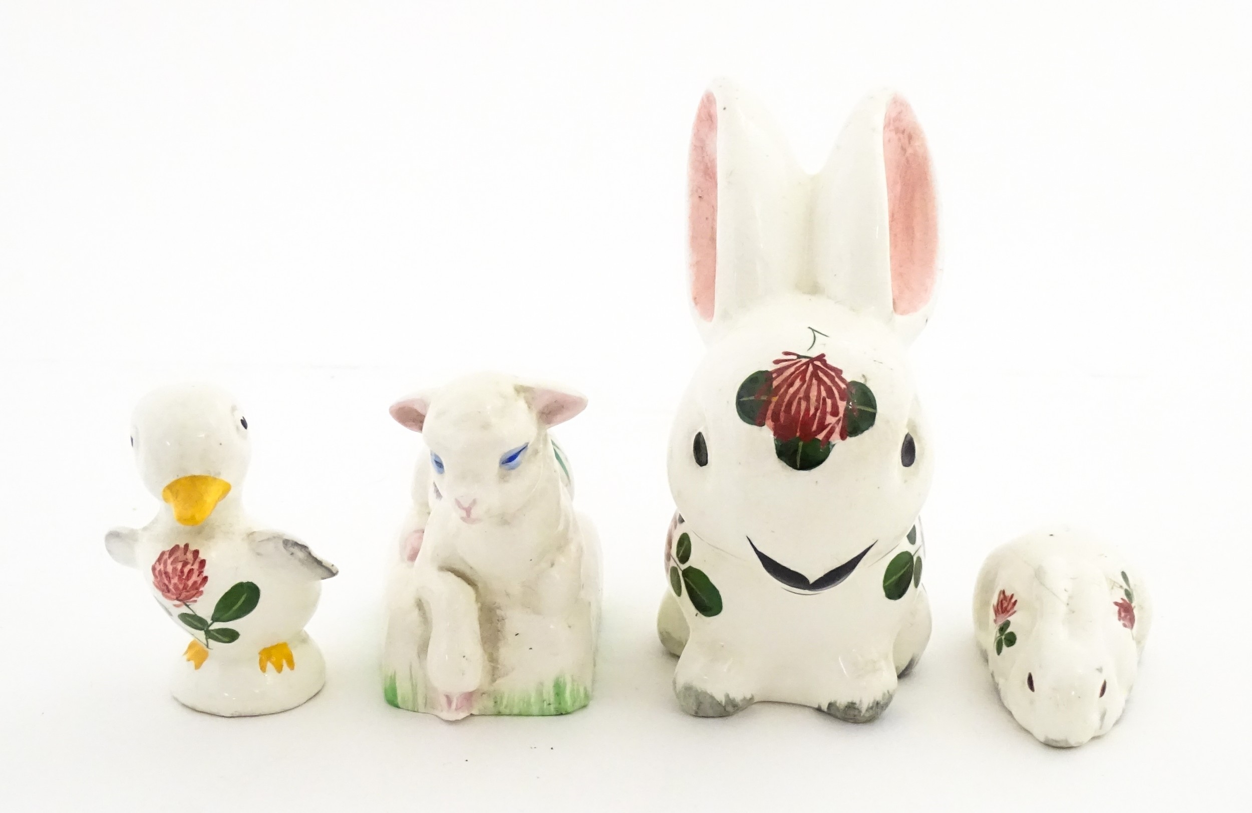 Four Plichta models comprising bunny rabbit, lamb, duck, etc. Largest approx. 5" high (4)
