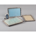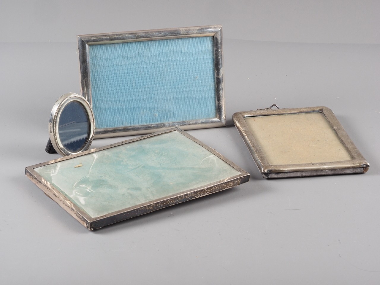 A rectangular silver photograph frame, and three others