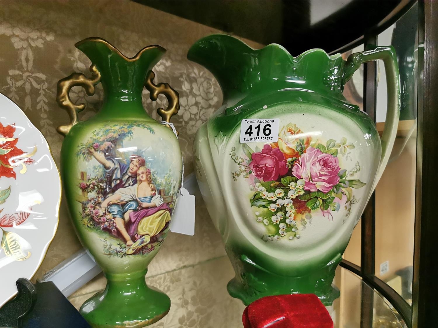 Three Large Floral And Green Vases In Good Condition