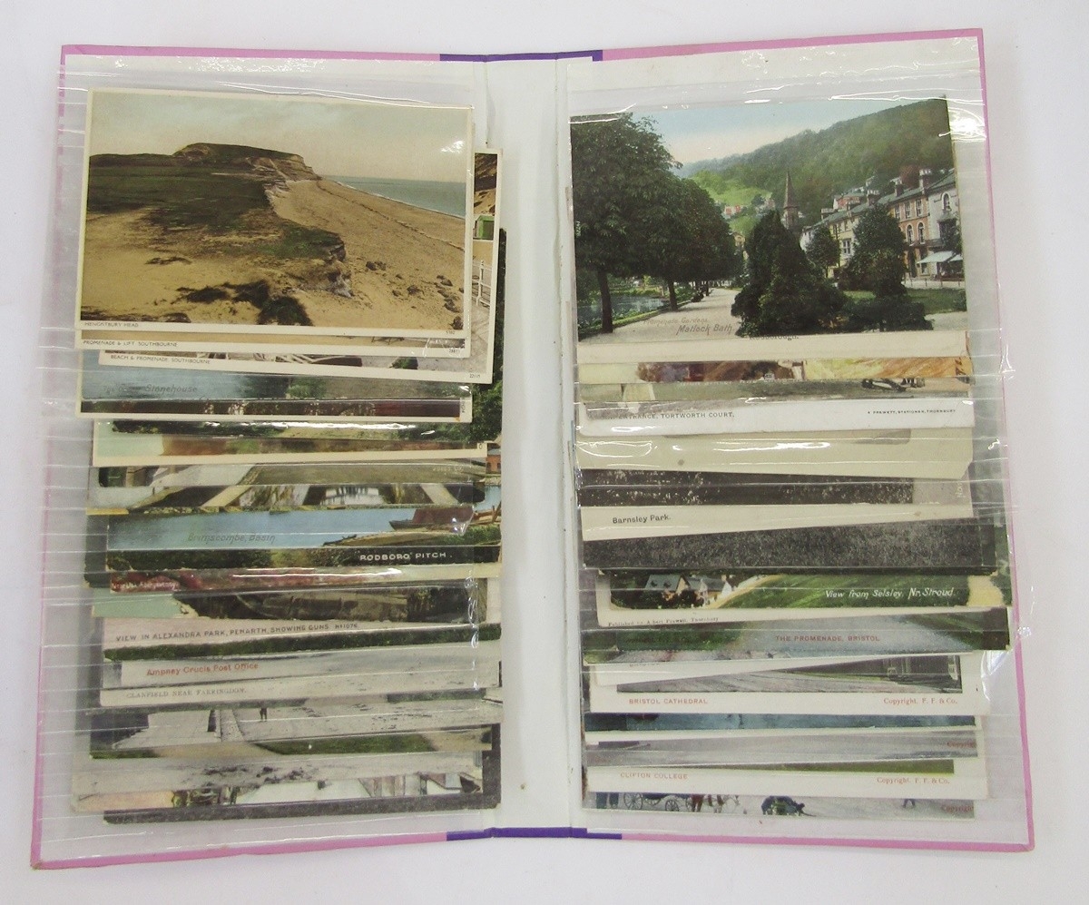 Quantity of early 20th century and later postcards, mostly topographical interest, most in albums, including some of local interest such as Ampney Crucis Post Office, Rodborough, Brimscombe, Bristol, continental scenes including Italy, etc (7 albums)