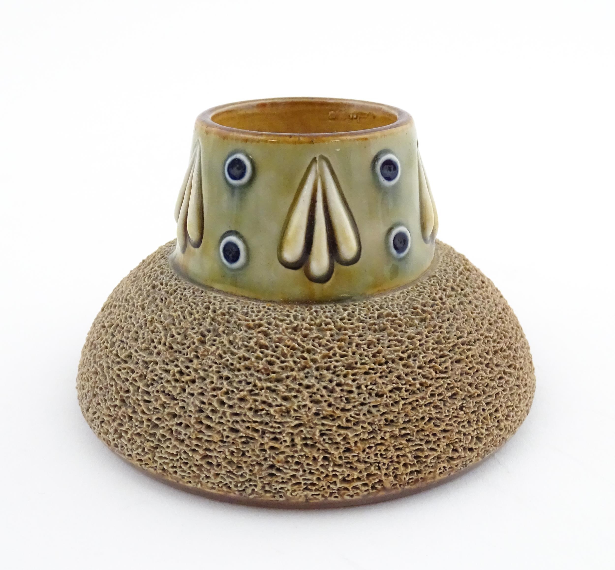 A Royal Doulton stoneware match striker with stylised foliate detail to rim. Marked under. Approx. 2 1/2" high