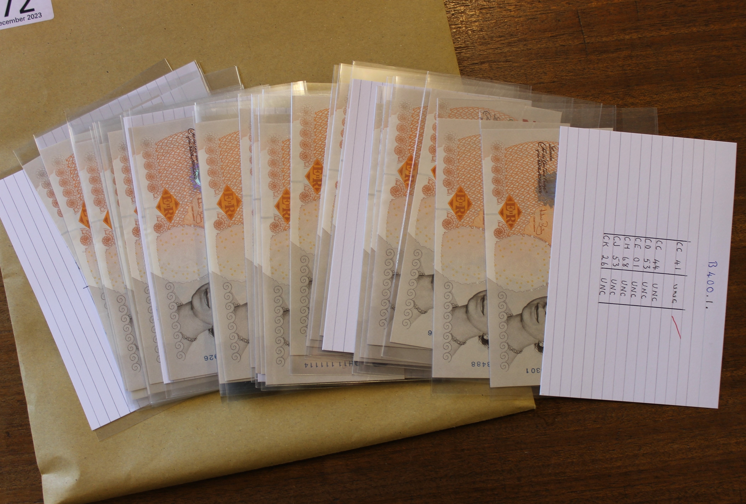 A.J. Bailey. £10 collection, generally uncirculated with CC44 first series, column sort EL51, HL01, HL31, replacement LL02 etc. Qty 41 (R)