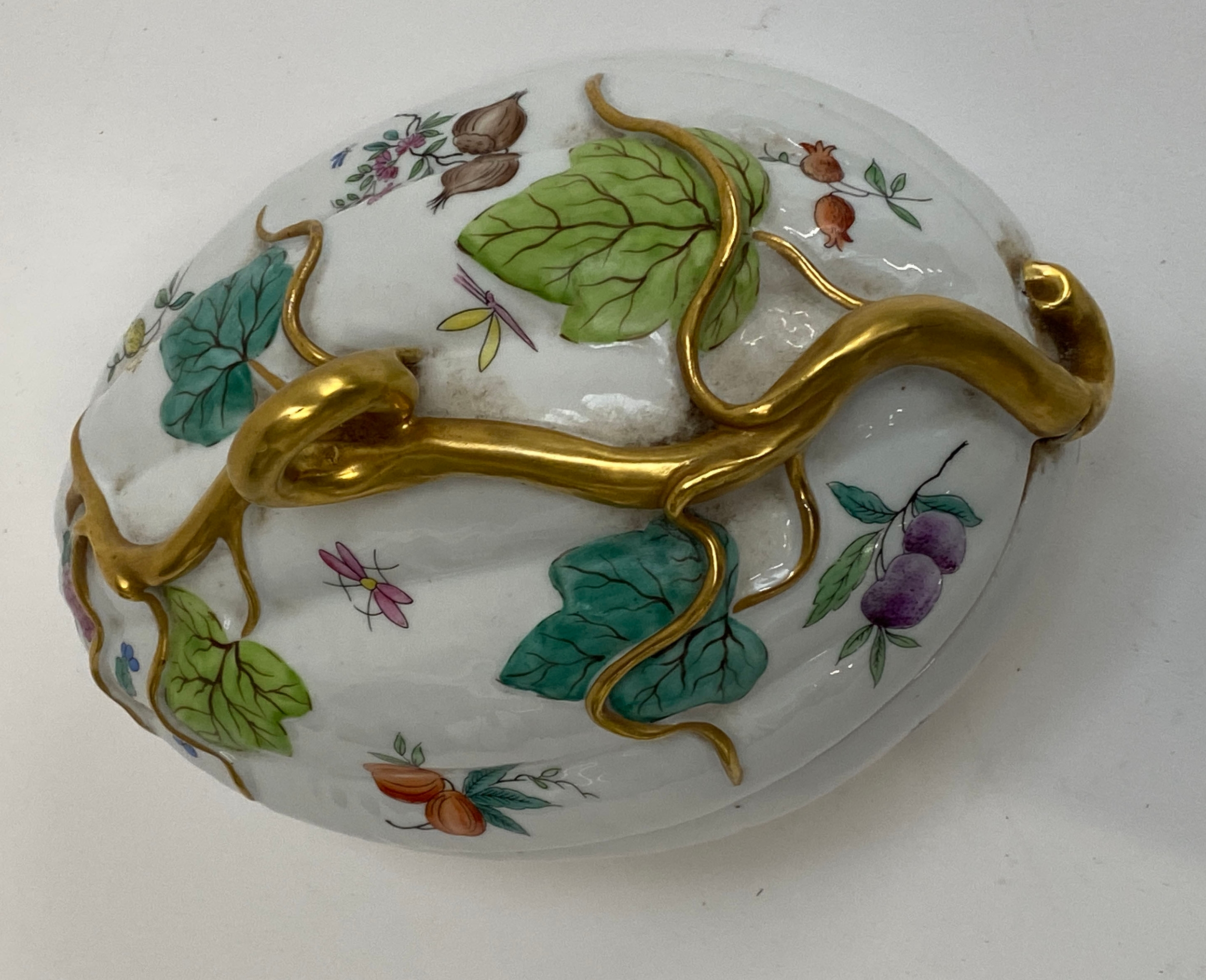 A Vista Alegre Portugal porcelain gourd shaped lidded pot, p.2683, 19cmL