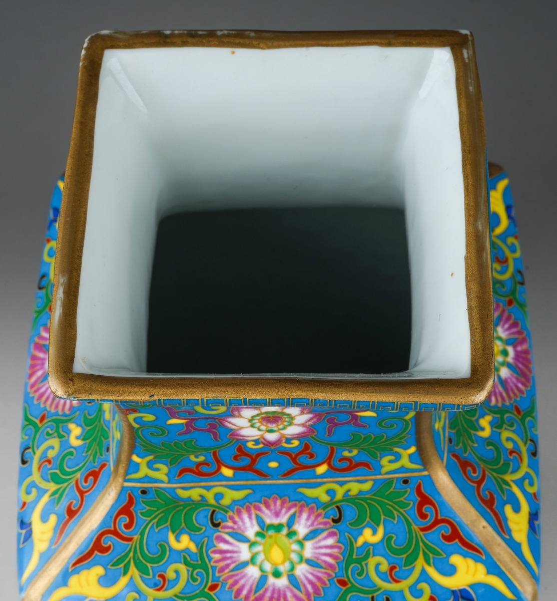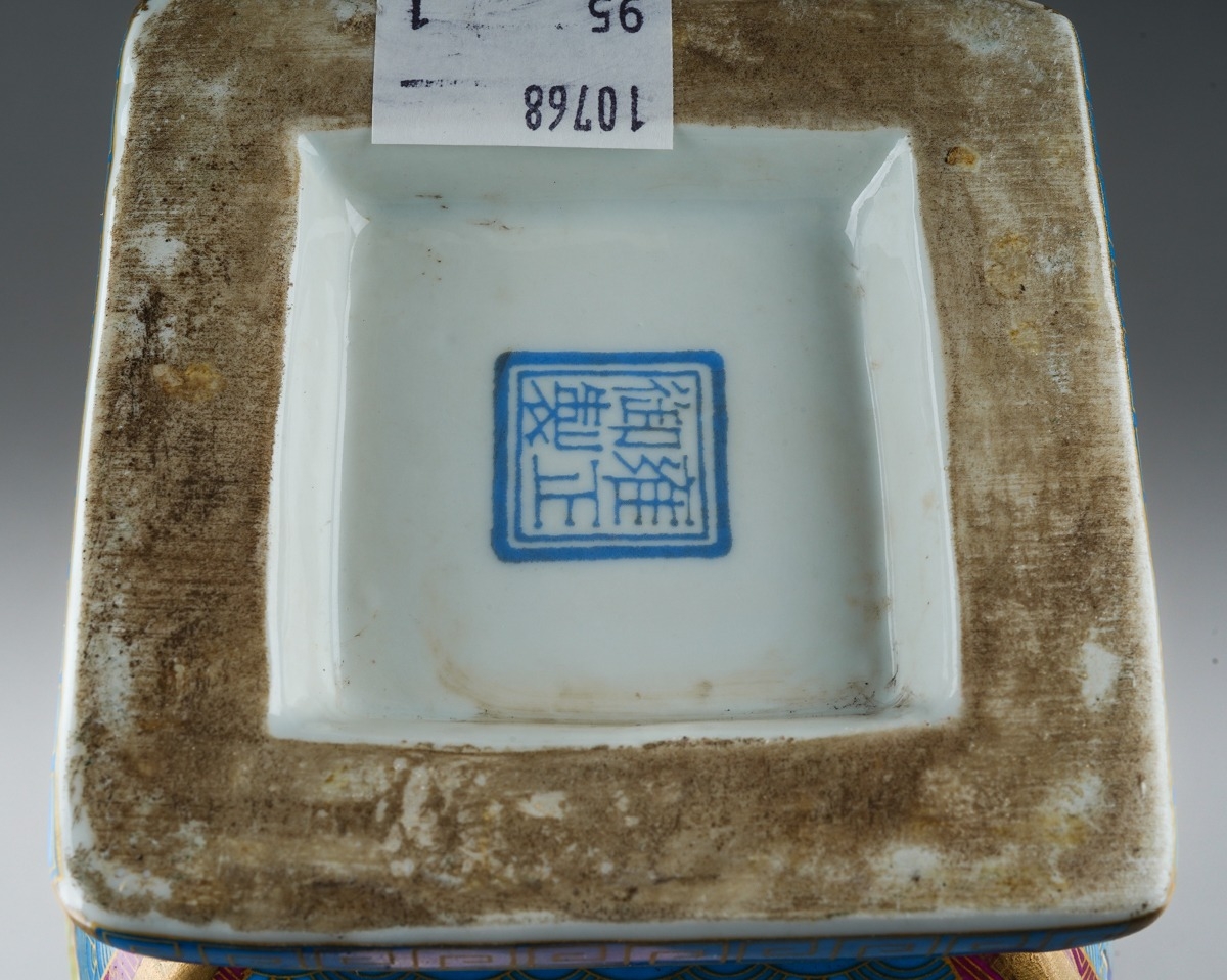 A modern Chinese porcelain vase of square baluster form, pol...