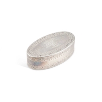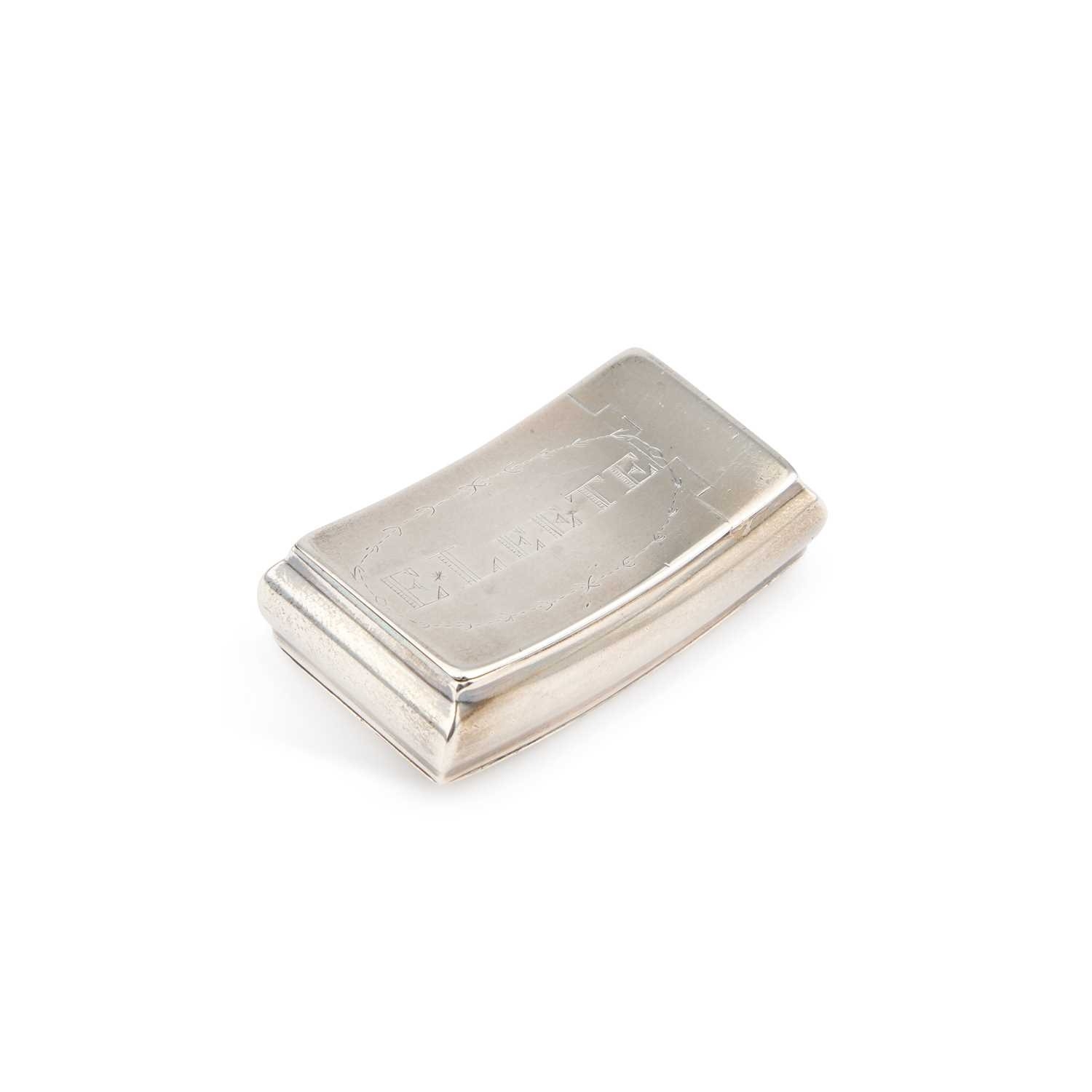 by William Pugh, Birmingham 1810, rectangular with rounded sides, shaped for the pocket, the hinged cover inscribed E. LEETE. 6cm long, 1.2 troy ounces
