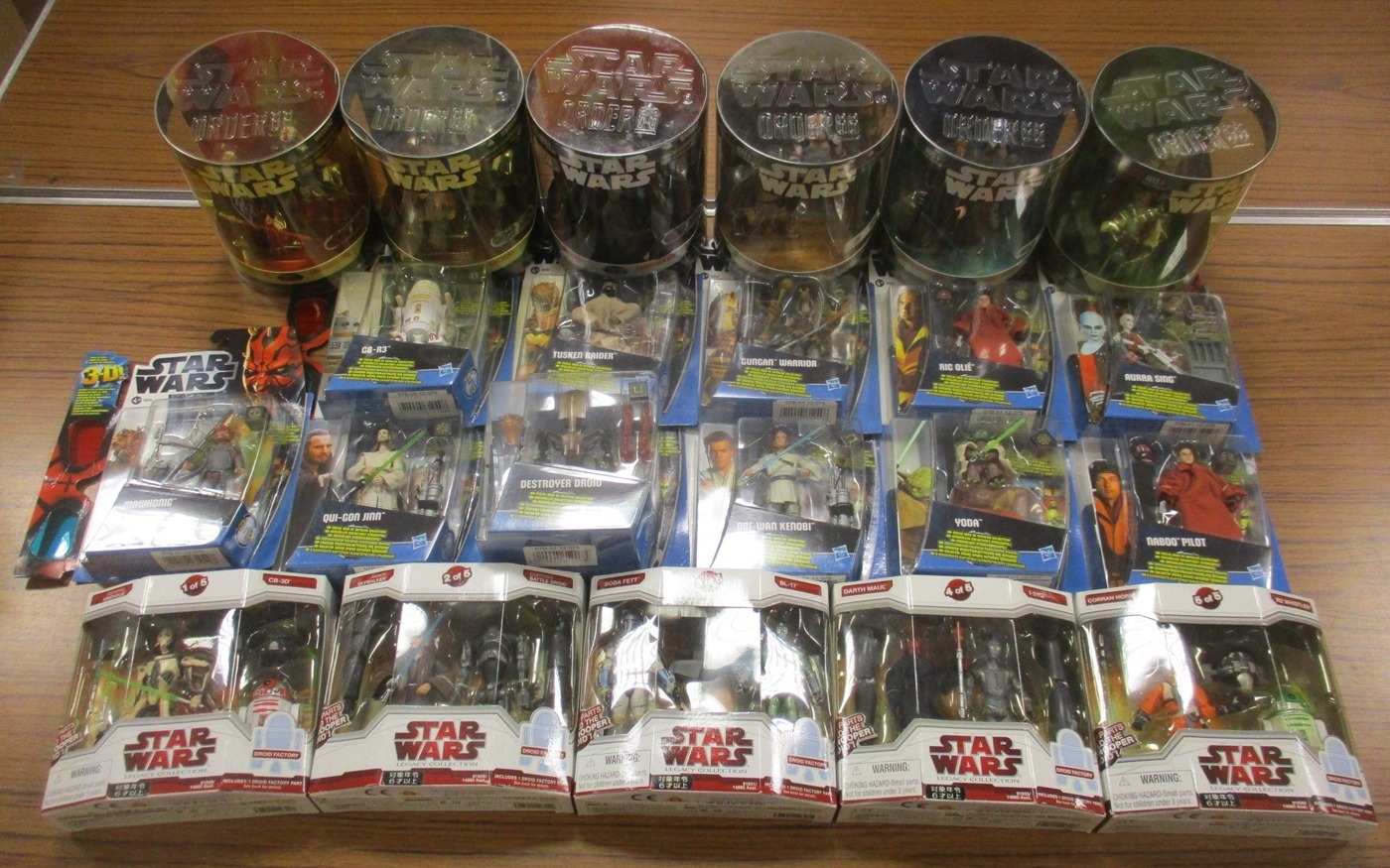 Star Wars. Hasbro. Collection of largely Prequel Era figures, generally near mint to mint in excellent to near mint boxes, with Order 66 (6 of 6 packs), Legacy Collection Dark Trooper Droid Factory (5 of 5 packs) and Star Wars 3-D! (11 of 12 packs). Qty 22 (B)