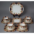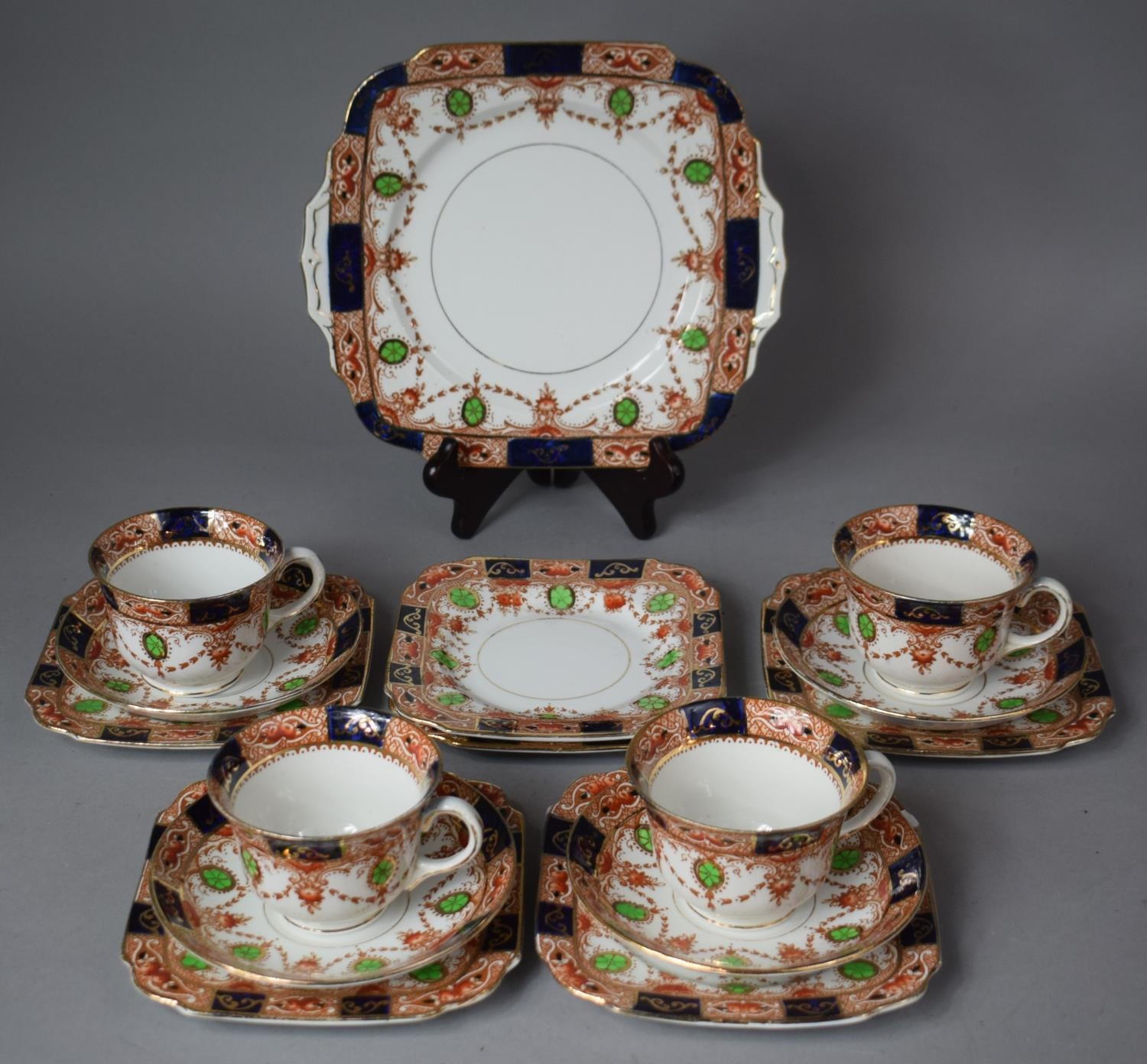 An Edwardian Pattern Part Tea Service Comprising Four Cups, Four Saucers, Six Side Plates and a Cake Plate (some AF)