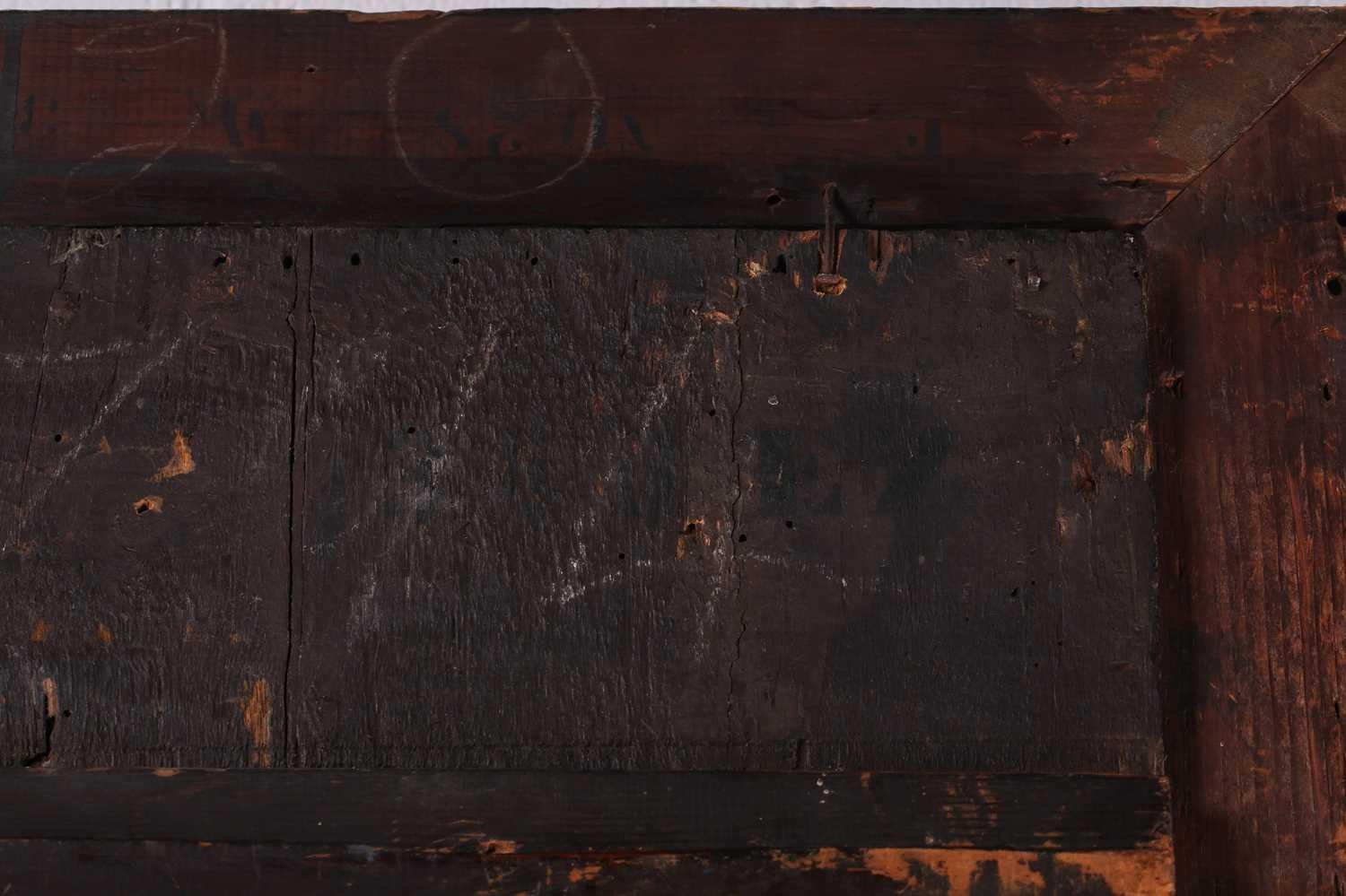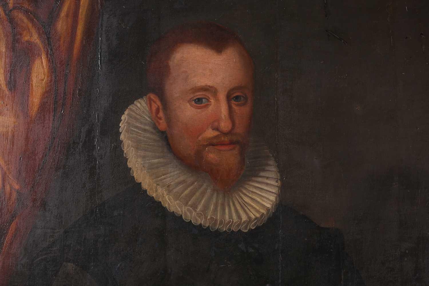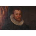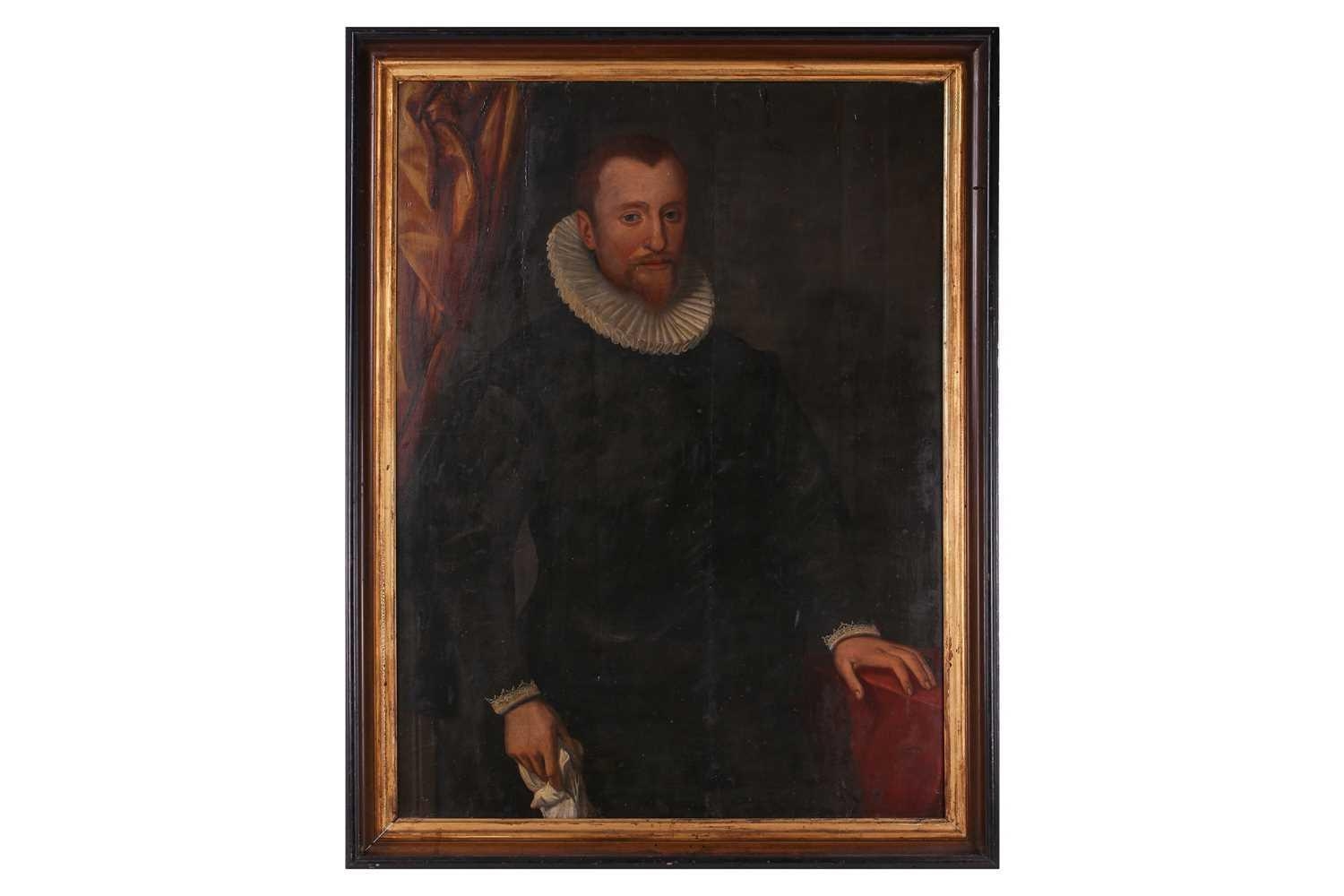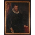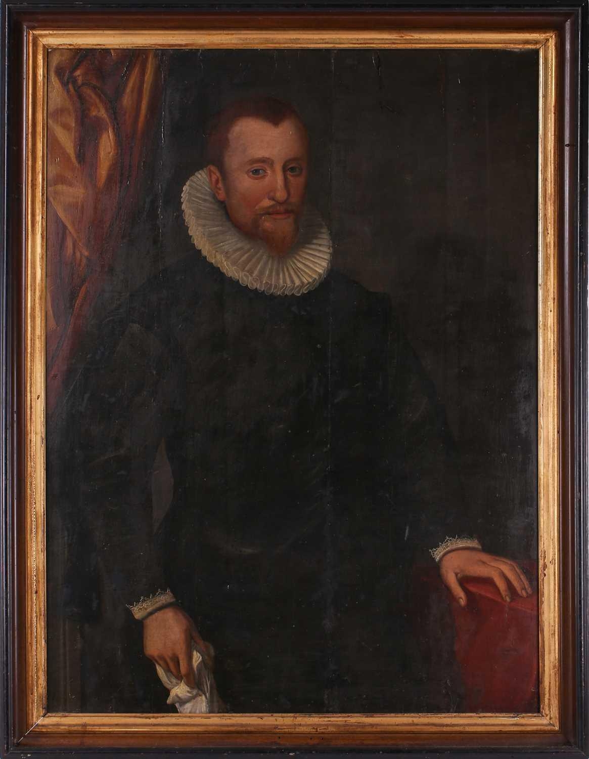 17th-Century Dutch School, three-quarter length portrait of a gentleman holding a handkerchief, oil on panel, 114 x 84 cm, framed 130 x 100 cm