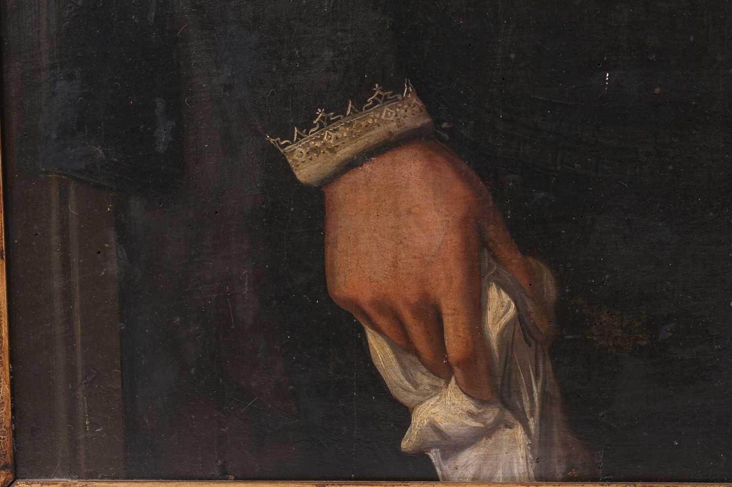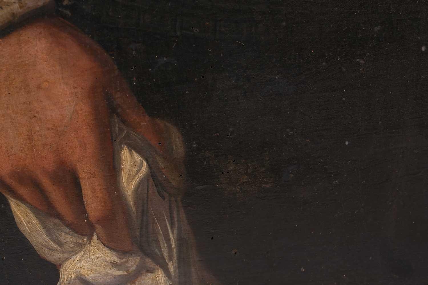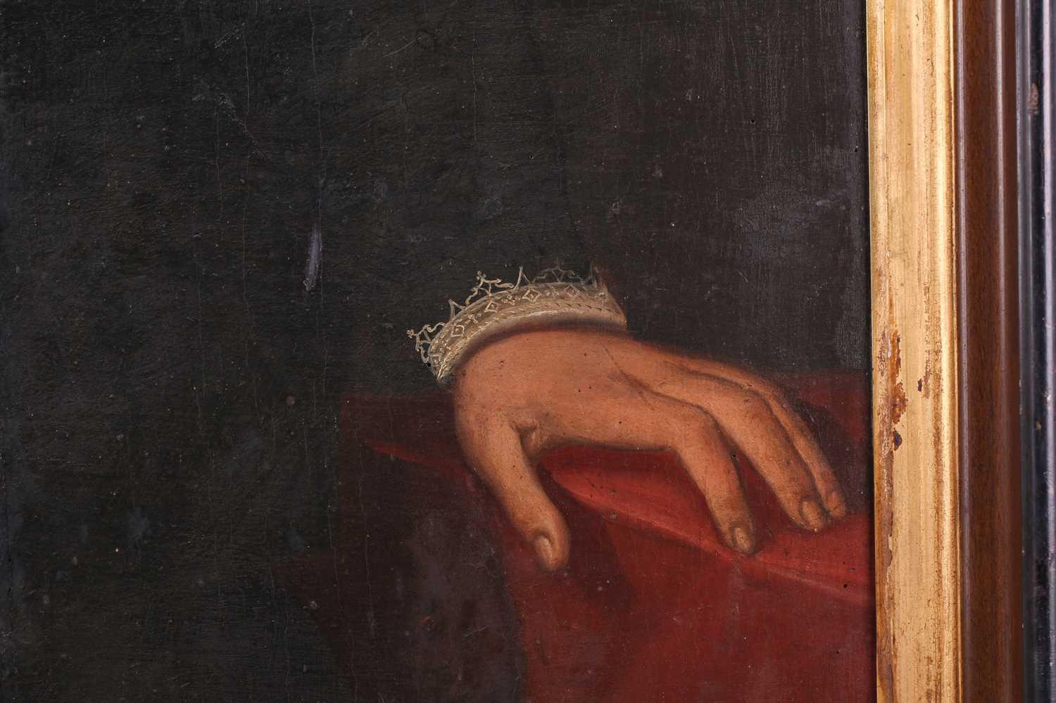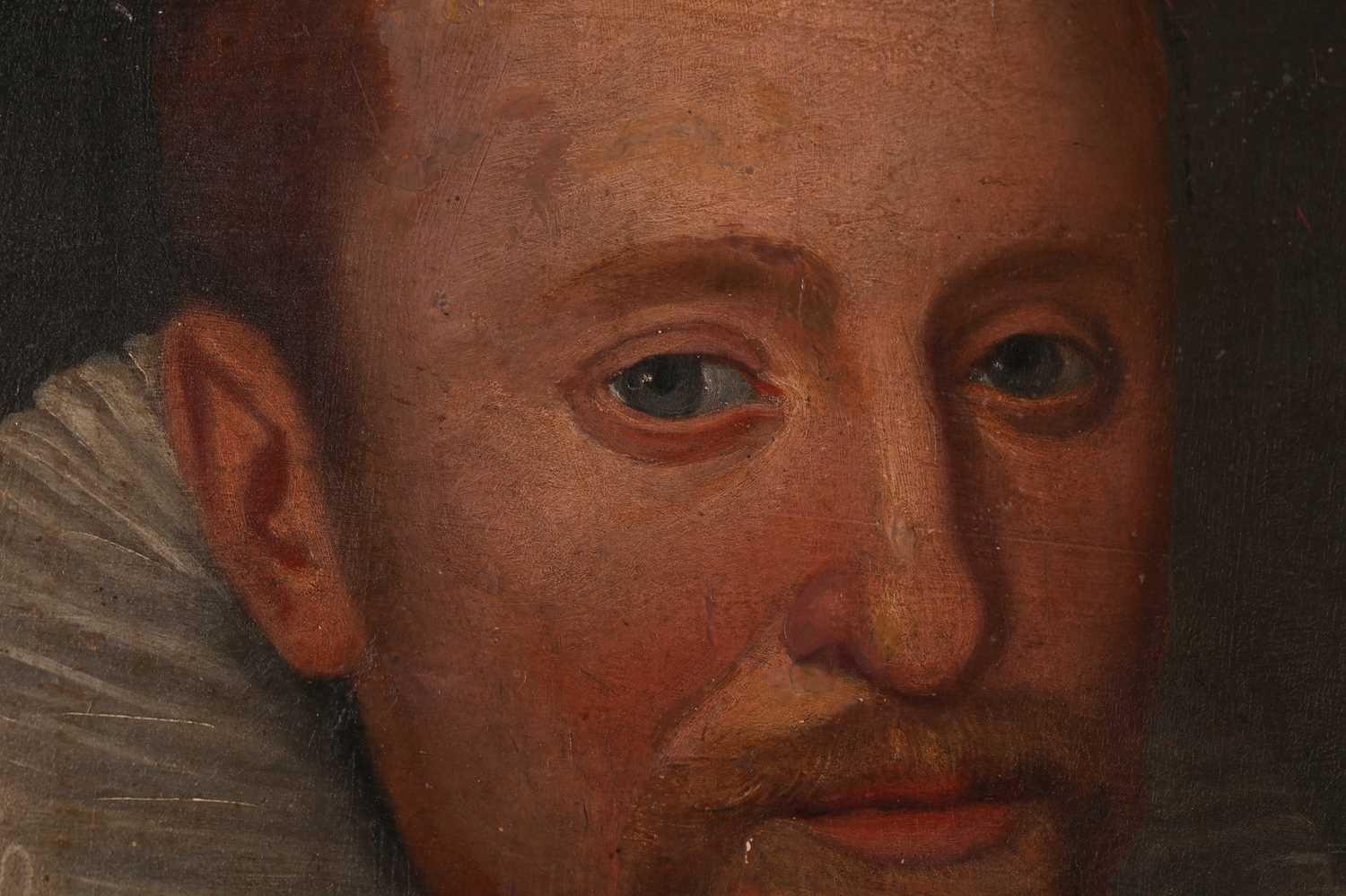 17th-Century Dutch School, three-quarter length portrait of a gentleman holding a handkerchief, oil on panel, 114 x 84 cm, framed 130 x 100 cm