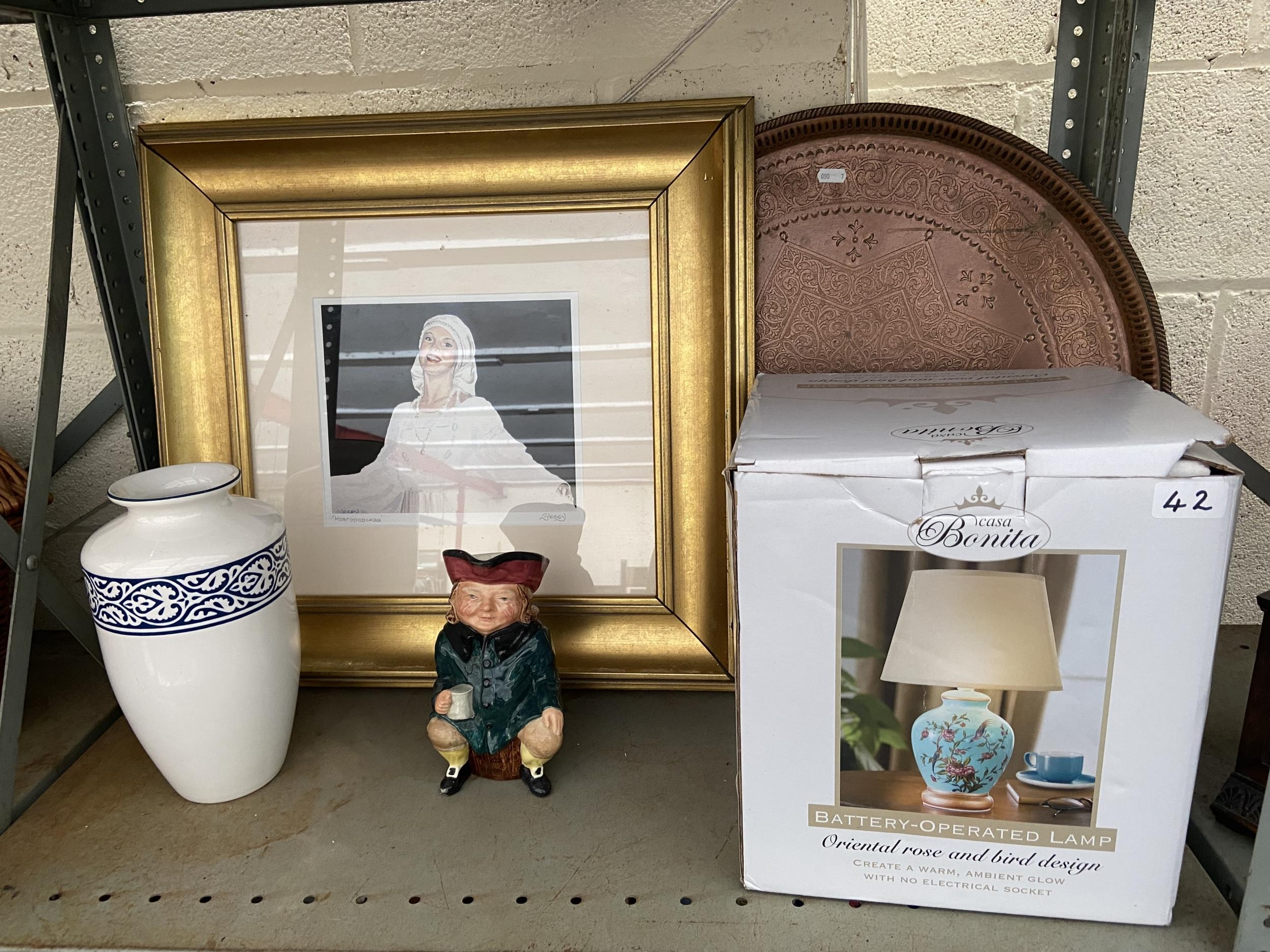 Copper table top, lamp and vase etc
