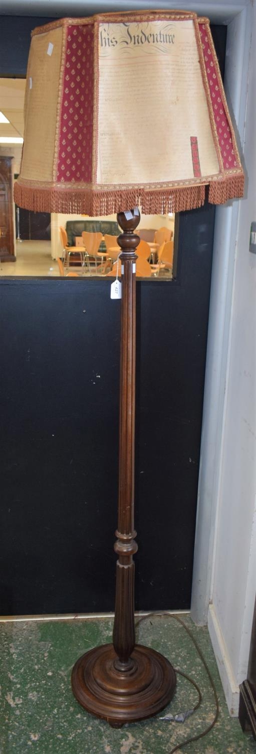 A 20th century mahogany standard lamp, turned, fluted and reeded column, stepped circular base, 158cm high